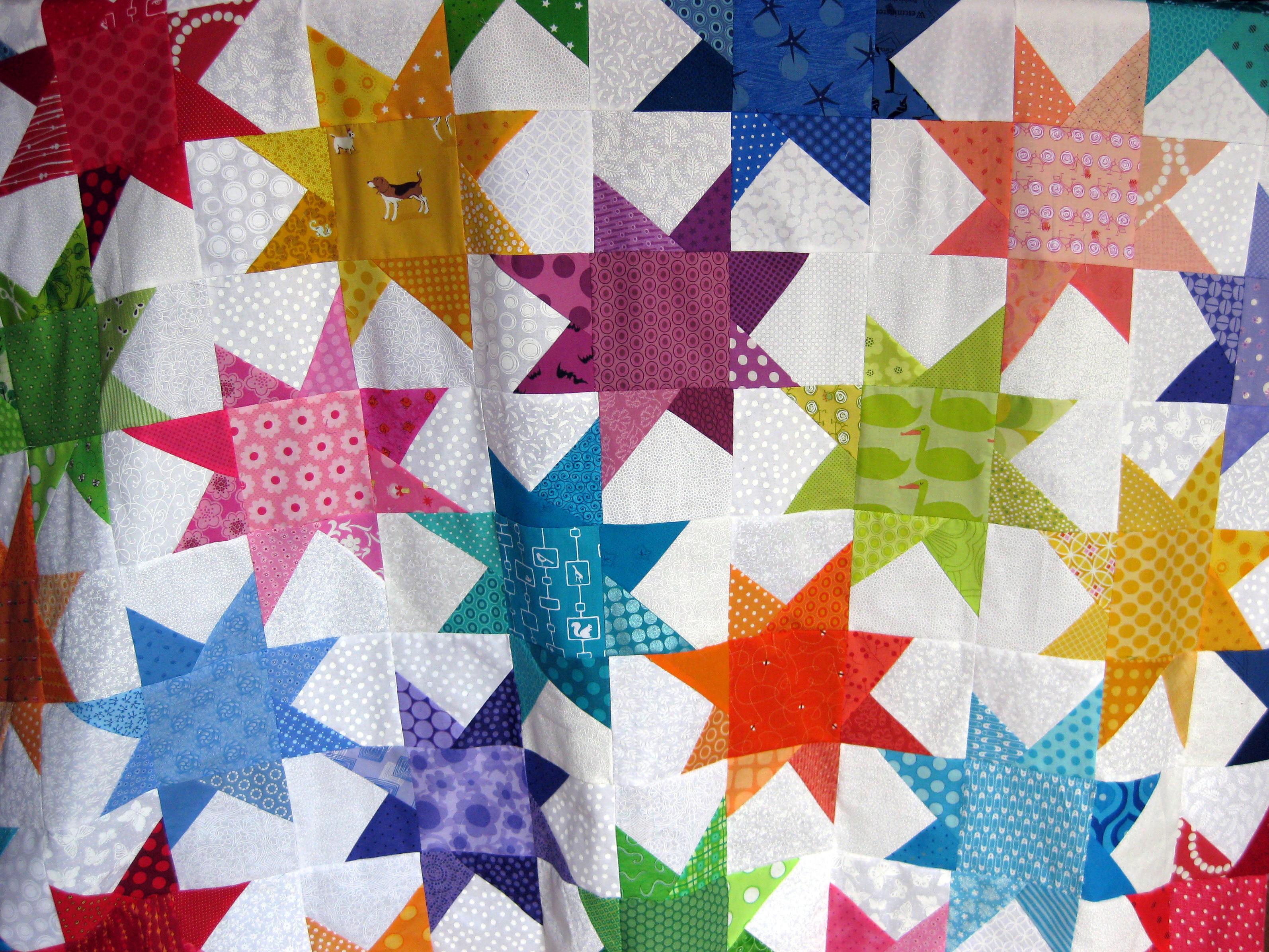 I have become addicted to making wonky star quilts. I find them easy and fun, and it is a great pattern when I have to make quilts in a hurry. I have made at least 10 of these quilts so far, all of them different in some way.
