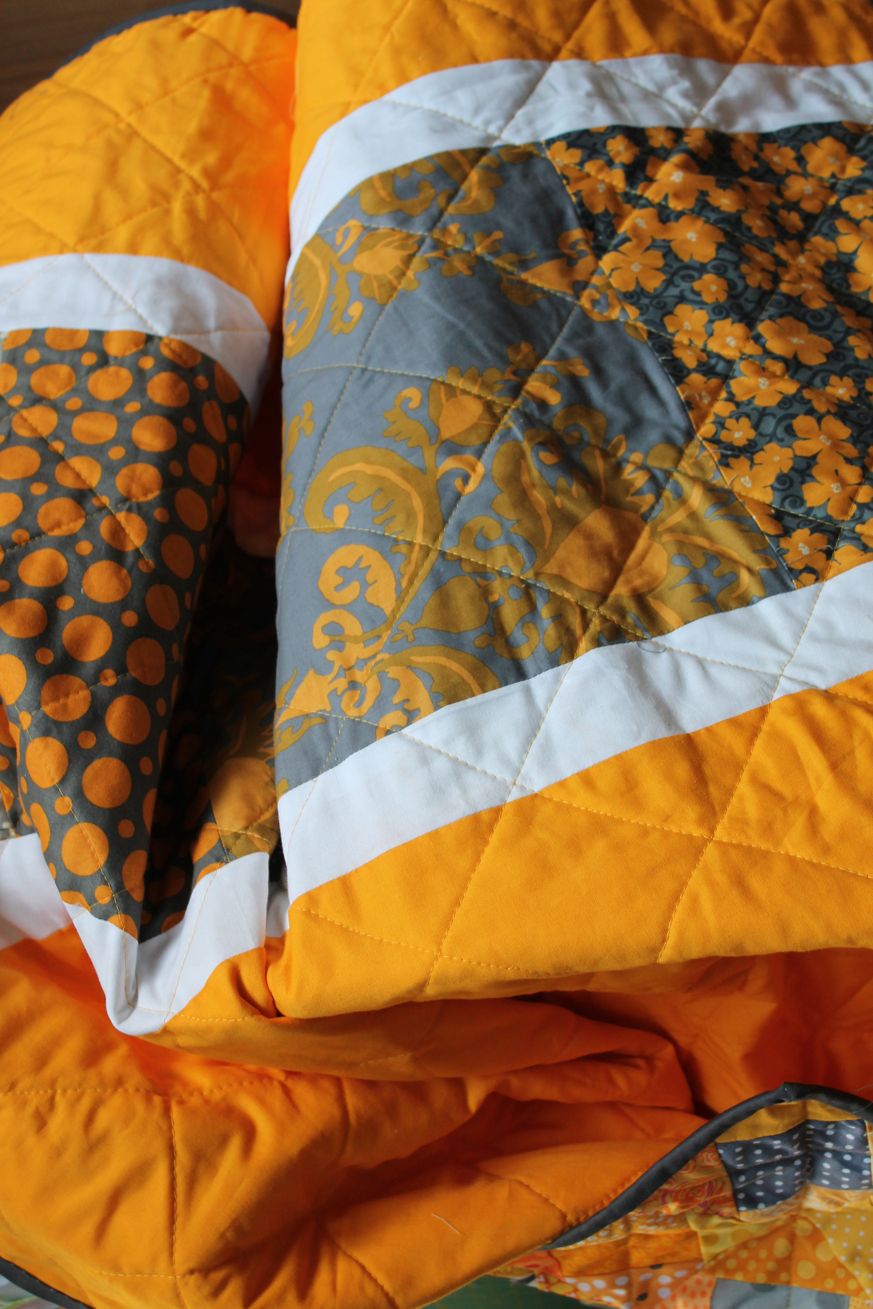 Quilt Back Published December 6, 2012 at 2848 × 4272 in Gold and Grey « Previous Next » Detail of the back of the quilt