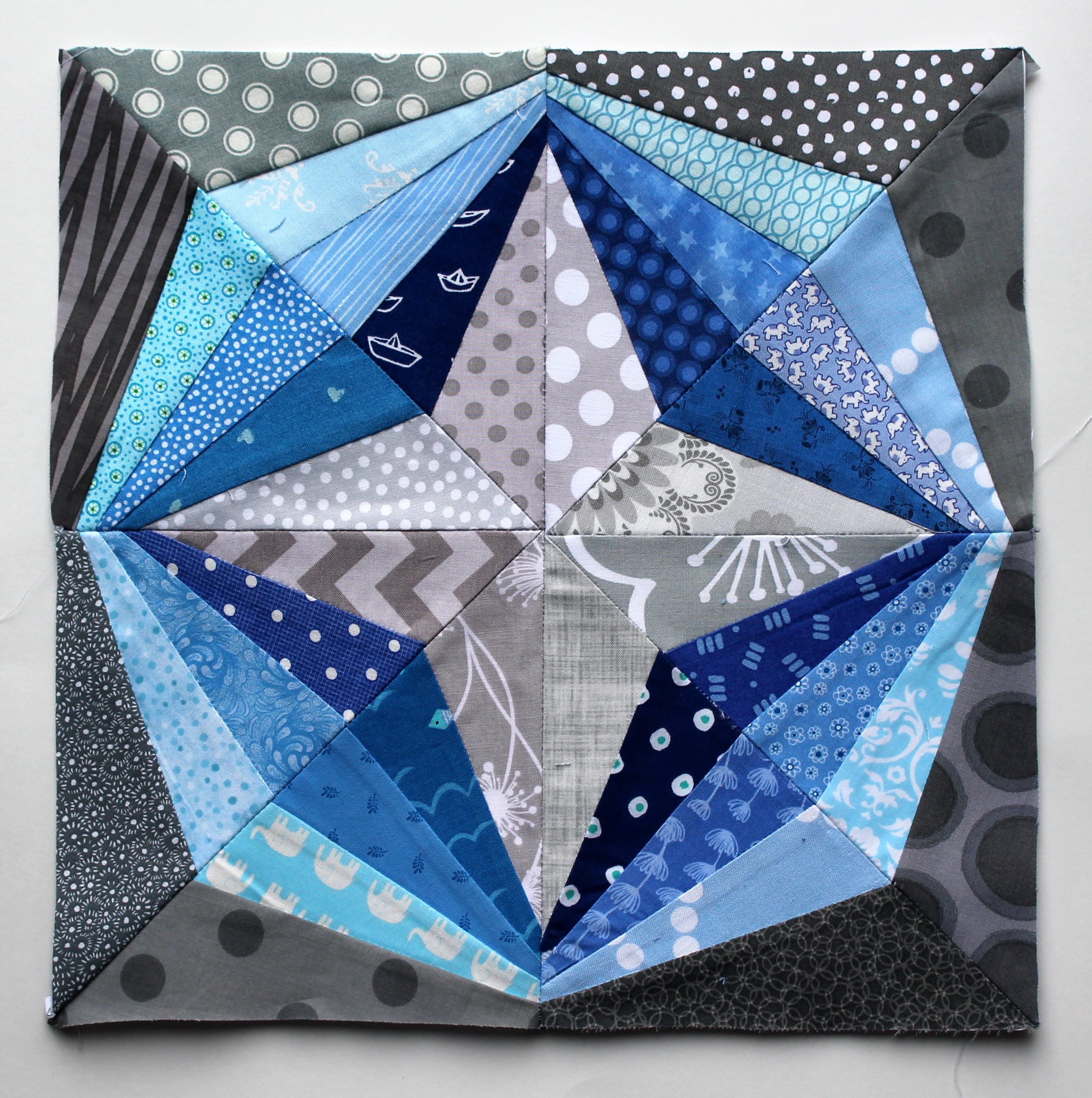 The block is Julie at 627handworks “Global Concept” paper piecing pattern.  You can find the free pattern here.  As with all of Julie’s patterns there are so many ways this block can be interpreted.  I went with the light grey star in the center after toying with the idea of using the light blue fabrics in the center piece.   I am loving how it finished up.