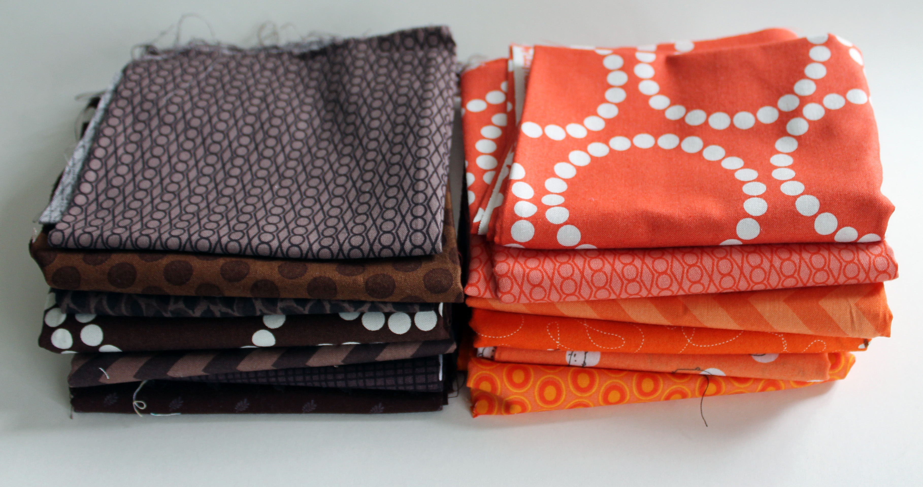 Last weekend, while my husband was away on a “dude’s weekend” I took the opportunity to clean up my stash a little. Needless to say there was fabric from one end of the house to the other… it looked like a fabulous colourful fabric bomb had gone off. During this process I realized I had somehow accumulated a decent size stash of brown fabric. I am still not sure how this happened as brown is definitely not a colour I use at all, ever, but now I had found it I of course had to use it.