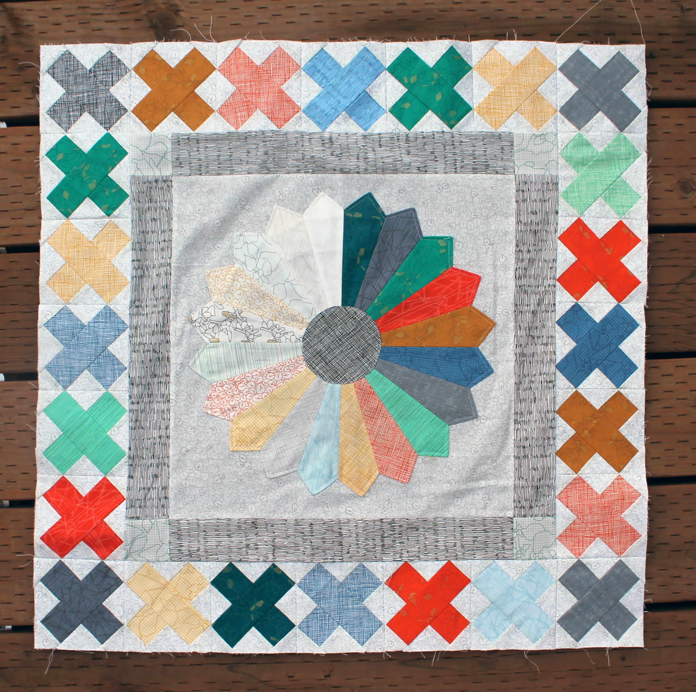 bontanics medallion quilt wipDon’t you just love the center Dresden flower – my clever fellow PMQG officer, Kelly of Blue Bird Sews made it.