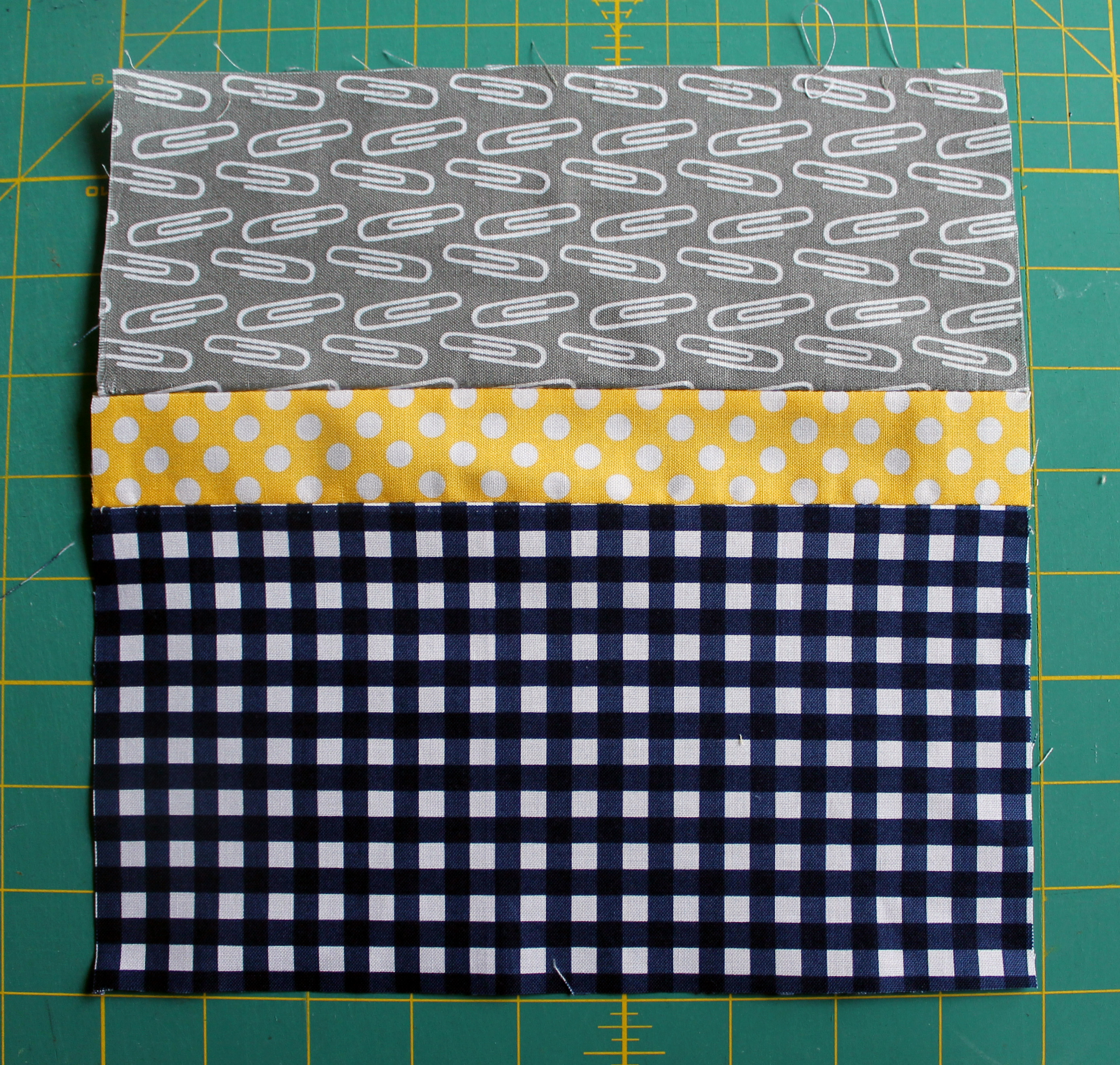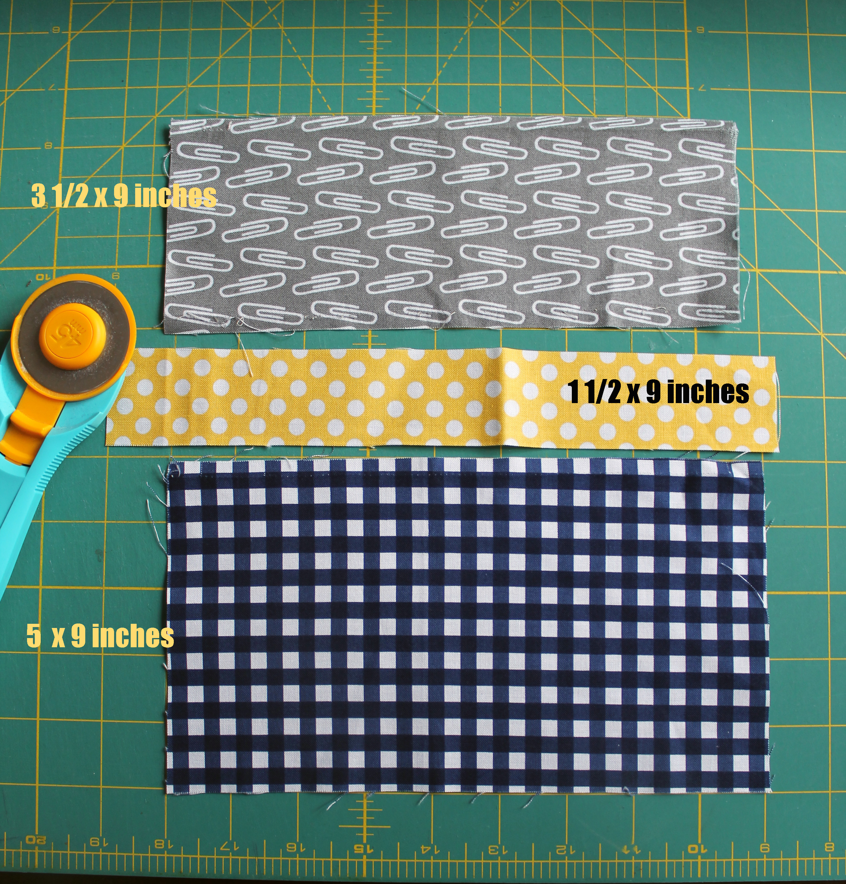1.  Cut a generous nine-inch strip of our chosen fabrics…