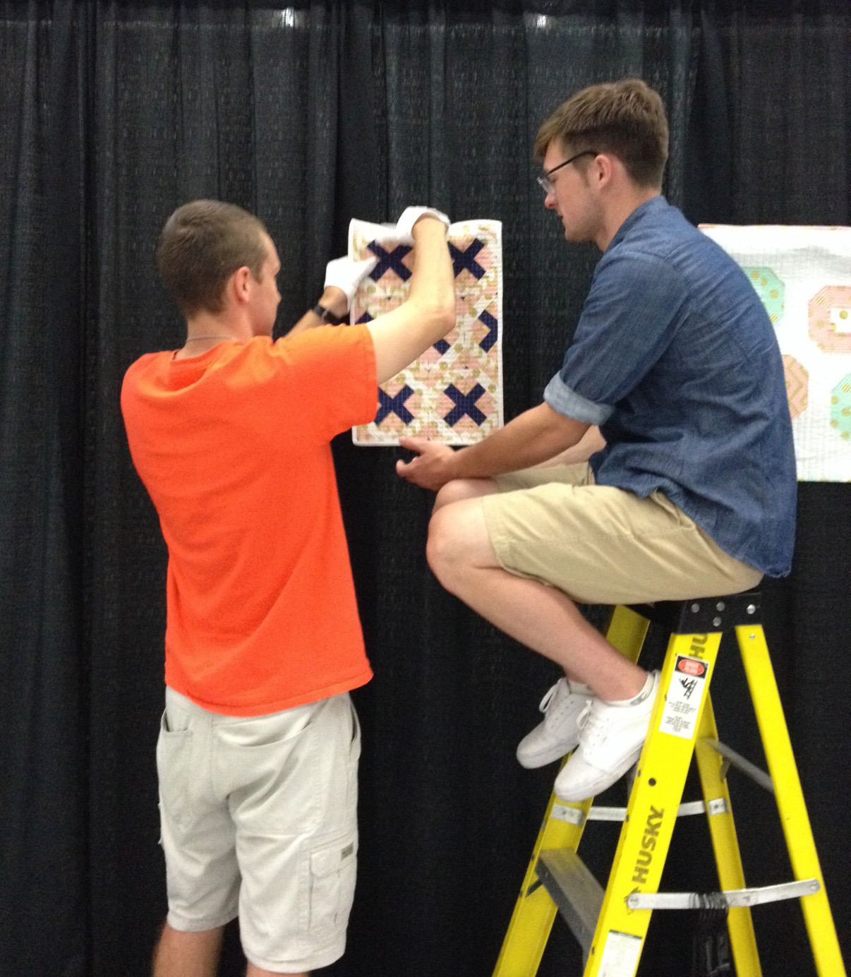 Seems simple right, but we found a lot of loose threads when hanging.  The Exhibit can not do anything to the quilt, they can not trim them so they are just there for all to see!