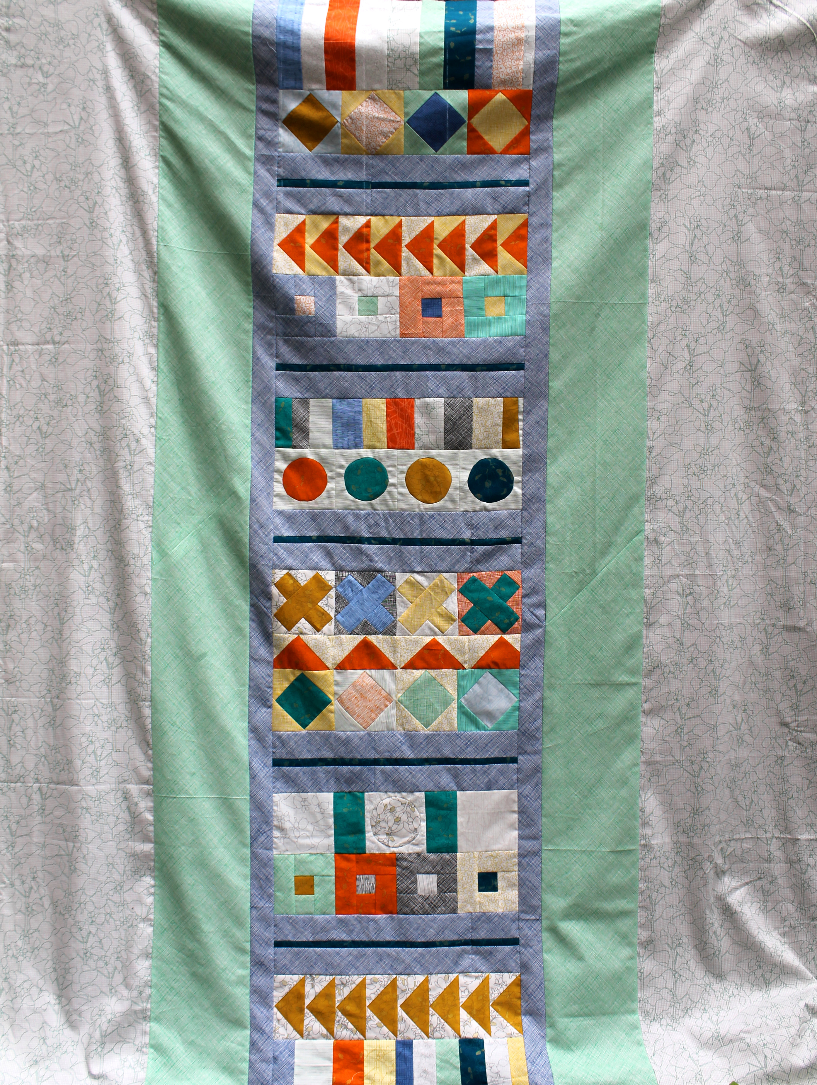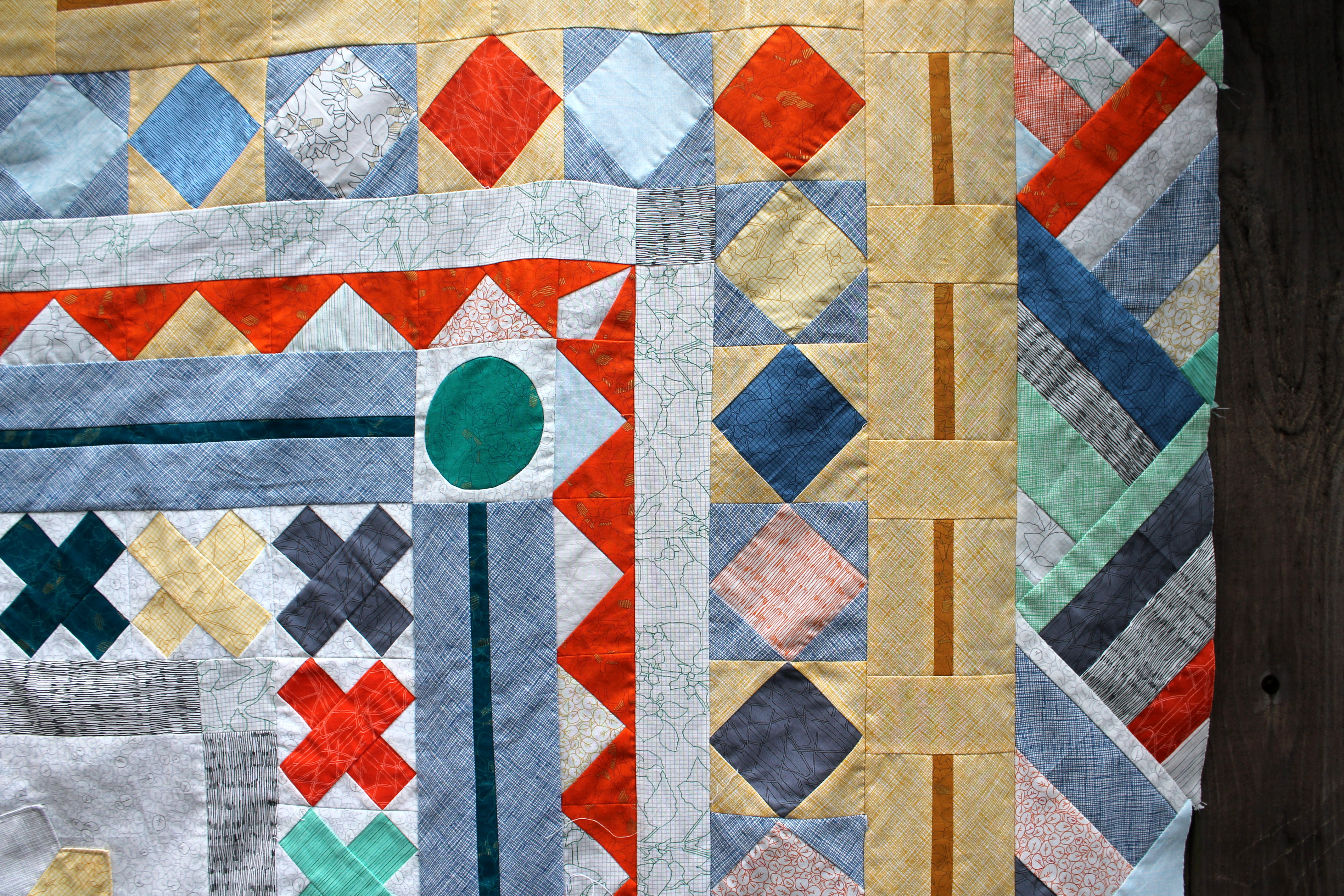 quilt backKeeping with the Medallion vibe, and embracing all the leftovers I made a stripped panel for the center of the quilt back.