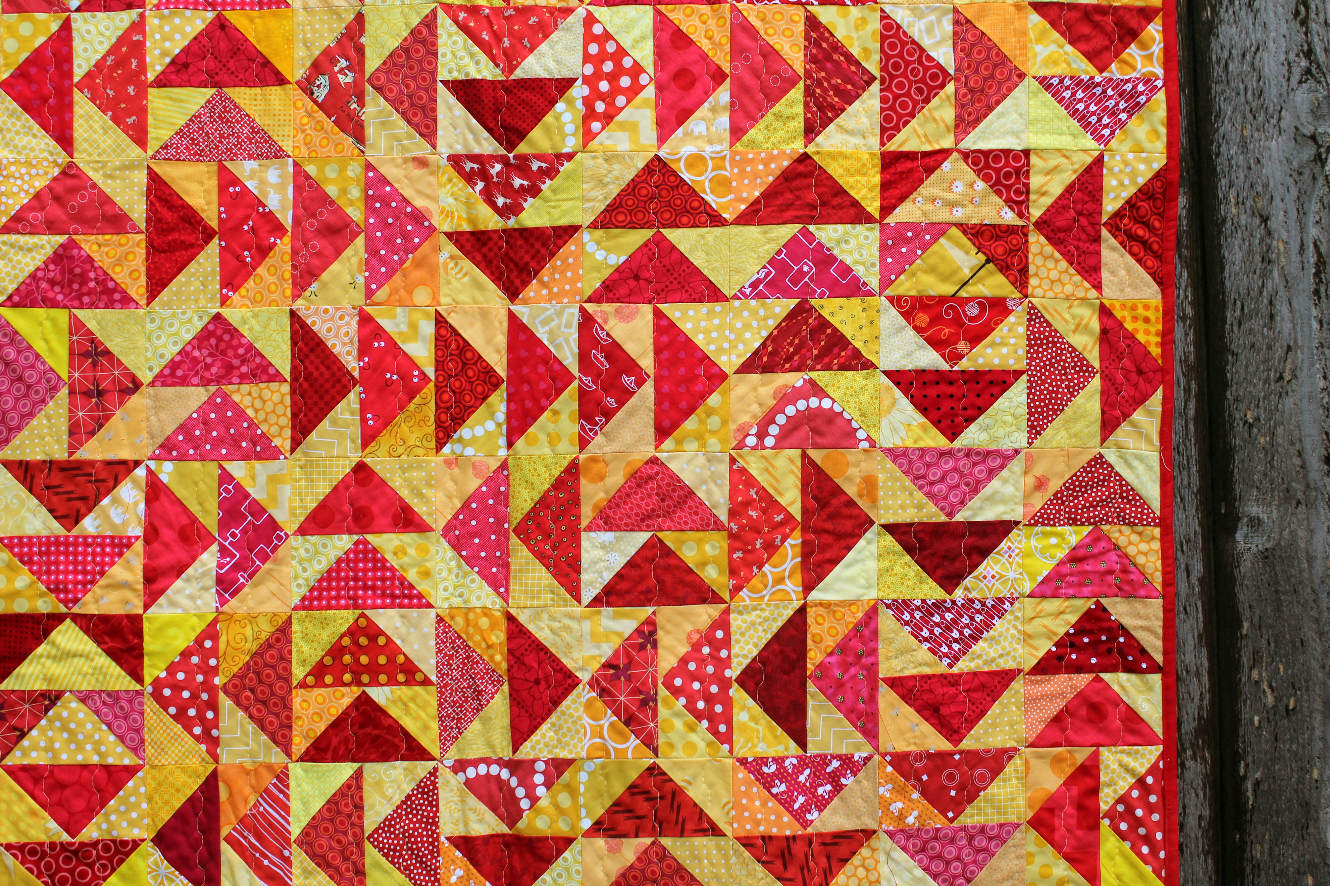 Quilt detailThe loud, bright colours of this quilt were inspired by my local Shell Service station (aka. gas station).  You can find my original post, with the paper piecing pattern I used, here.