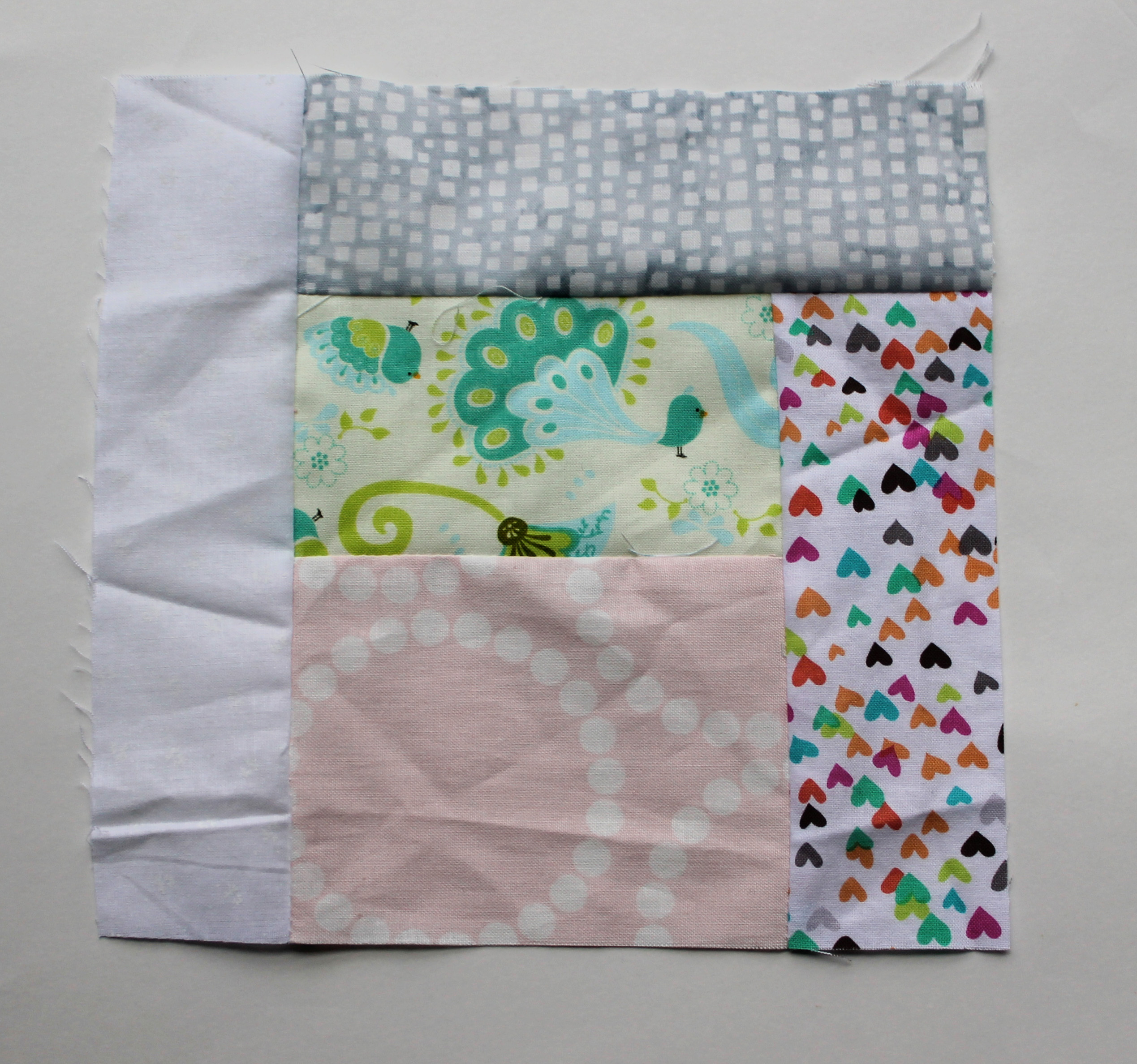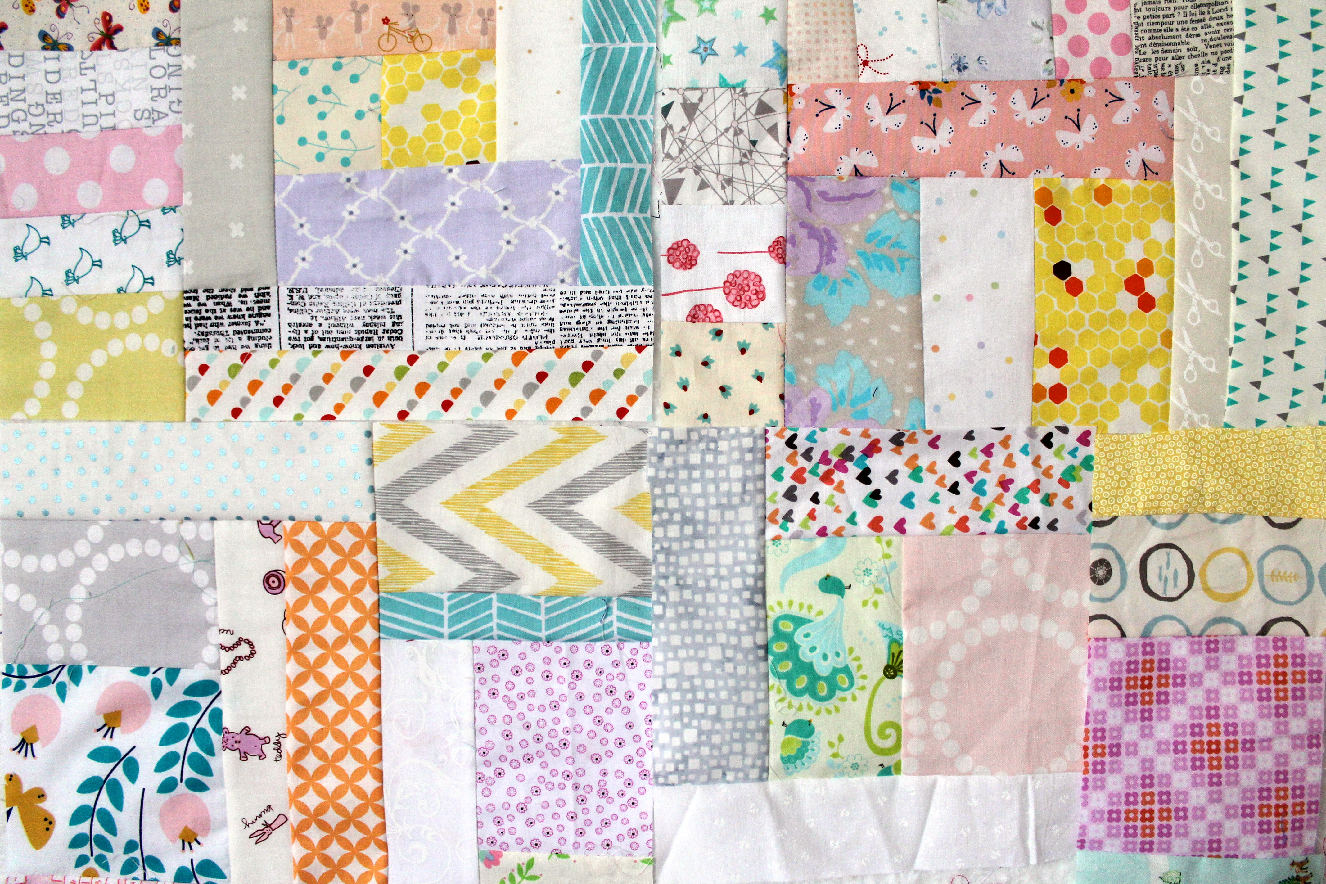 low volume improv blockI love how freeing this process is. I usually start by sewing similarly sized pieces together into strips of various sizes…