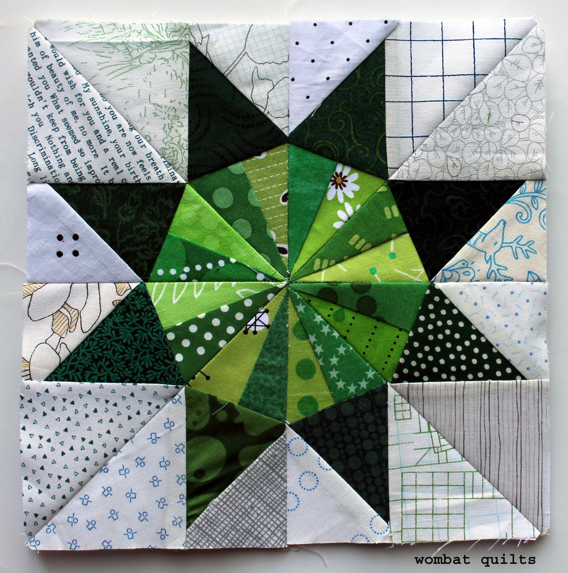 After making my green star for this week I ummed and ahhed about whether to share it on the blog. I love the star, but it suffers from the problem that a lot of paper piecing stars suffer from… a bulky center.