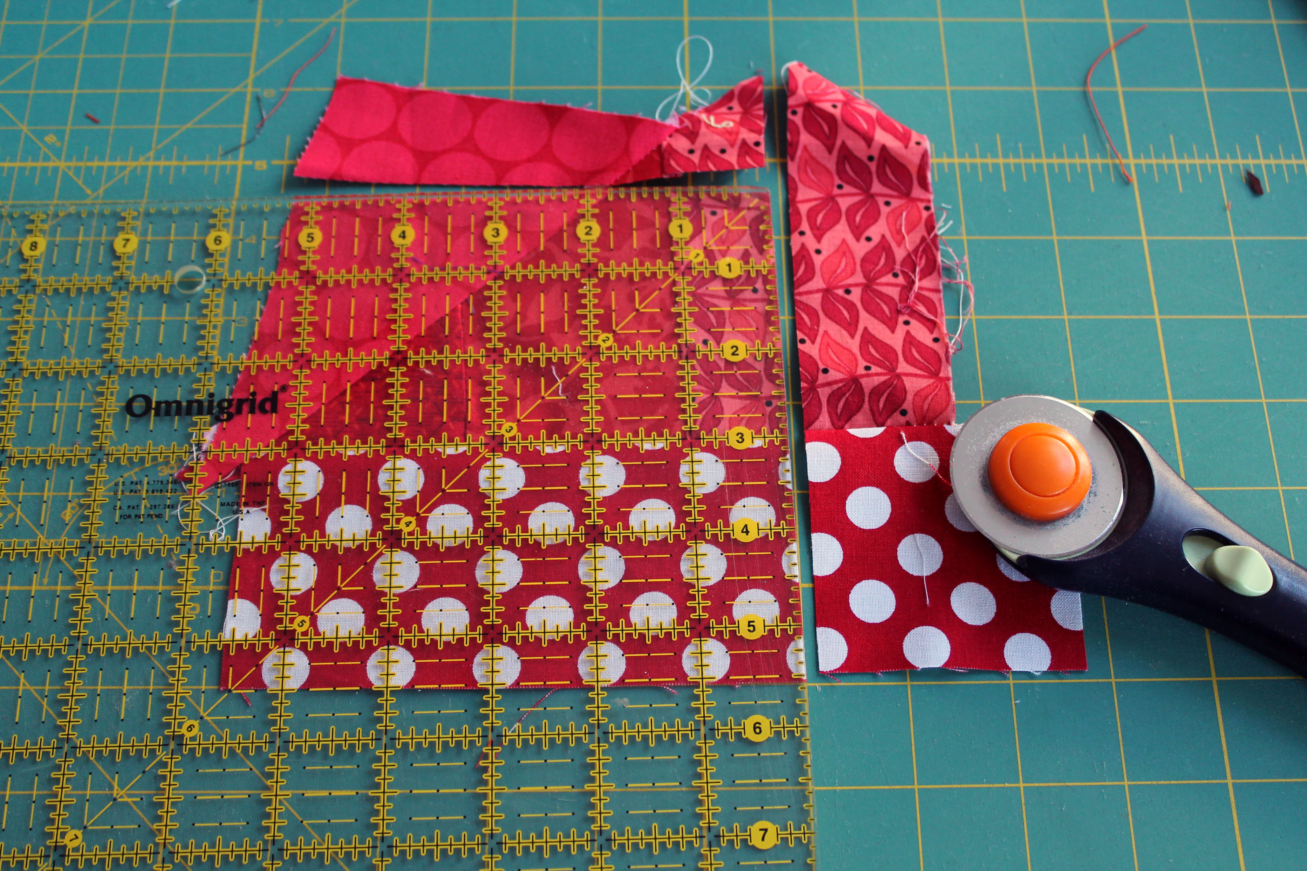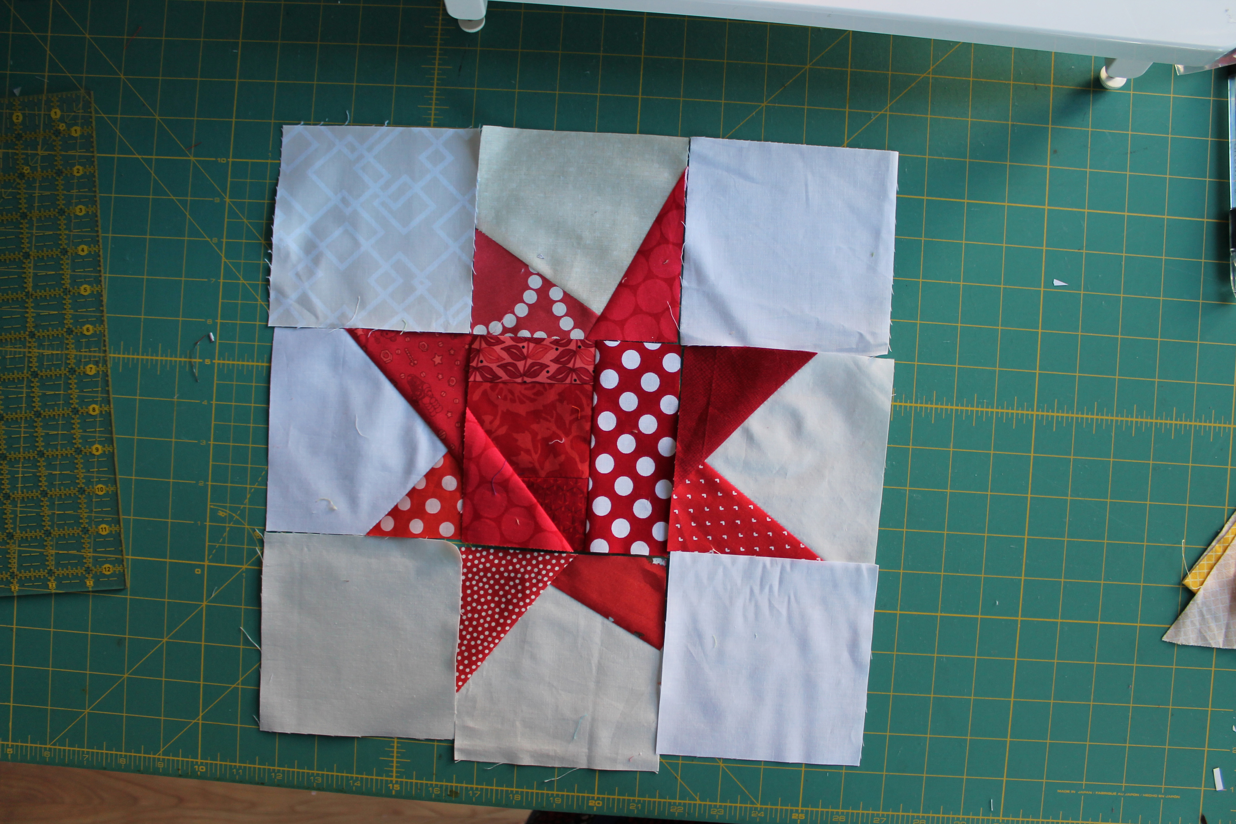 I have made this block a couple of times but love the instructions that my fellow Bee member added… Heather told us to make the white squares extra long… we added 3/4 of an inch to the pattern. This extra wiggle room makes trimming the block so much easier than the original pattern.