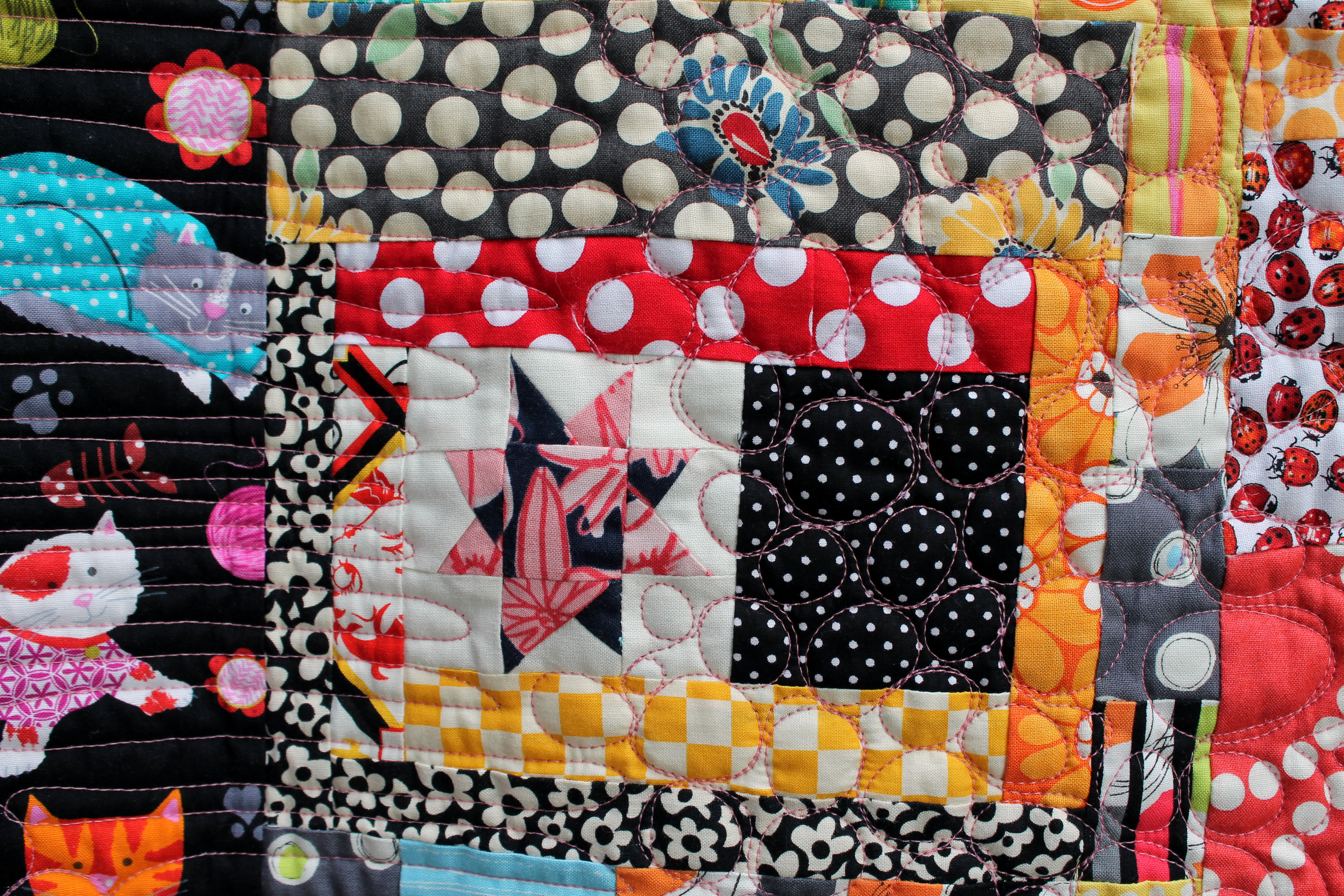 quilt detail 2This quilt is now in our Charity pool and will be used this year…and I am in the process of preparing for the January Charity Sew Day.  Every month PMQG members meet at the wonderful Modern Domestic and make blocks and chat and hang out.  Every month we make a quilt top together, all of them bright and fun and all of them destined to do good in the community.  It is such a good thing.
