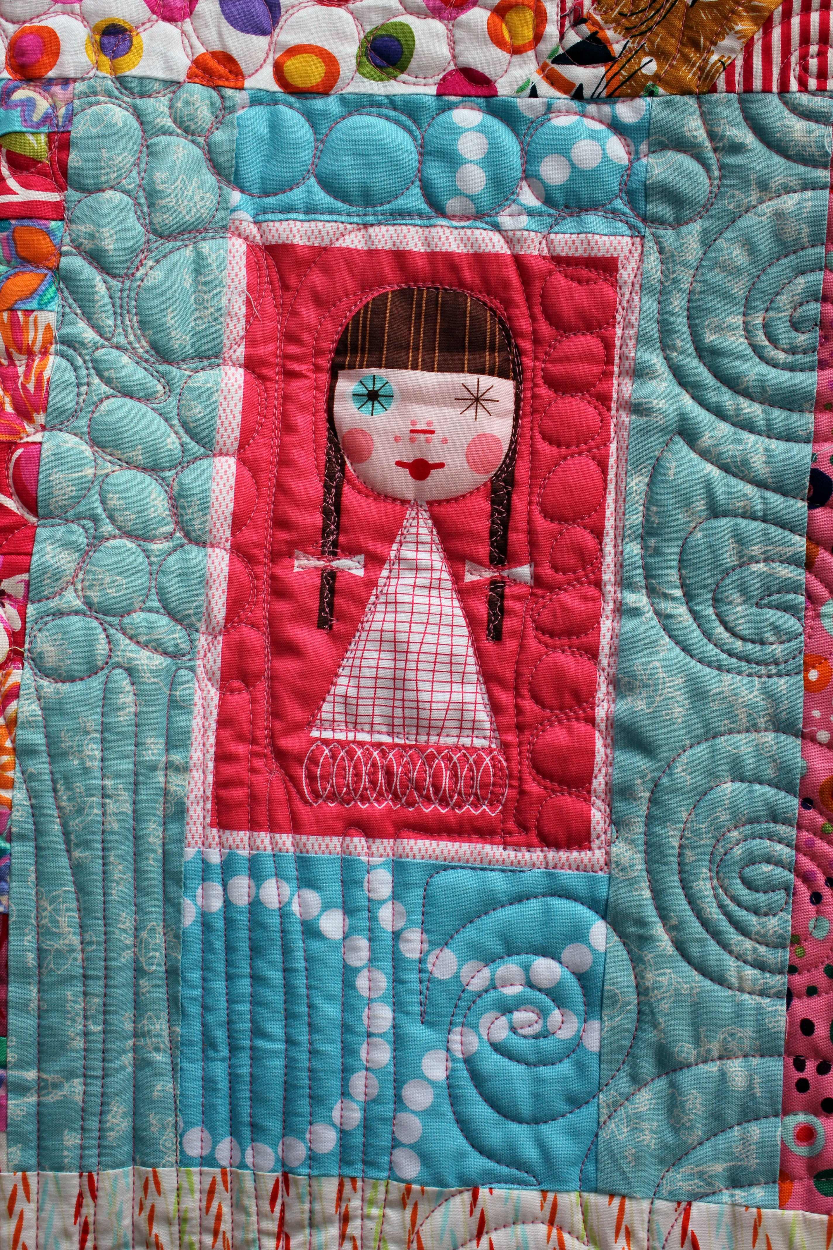 The end result is one of the most fun games of eye spy ever in a quilt.  I love the riot of colour and texture of this quilt.  You know it is going to make some kid extremely happy.