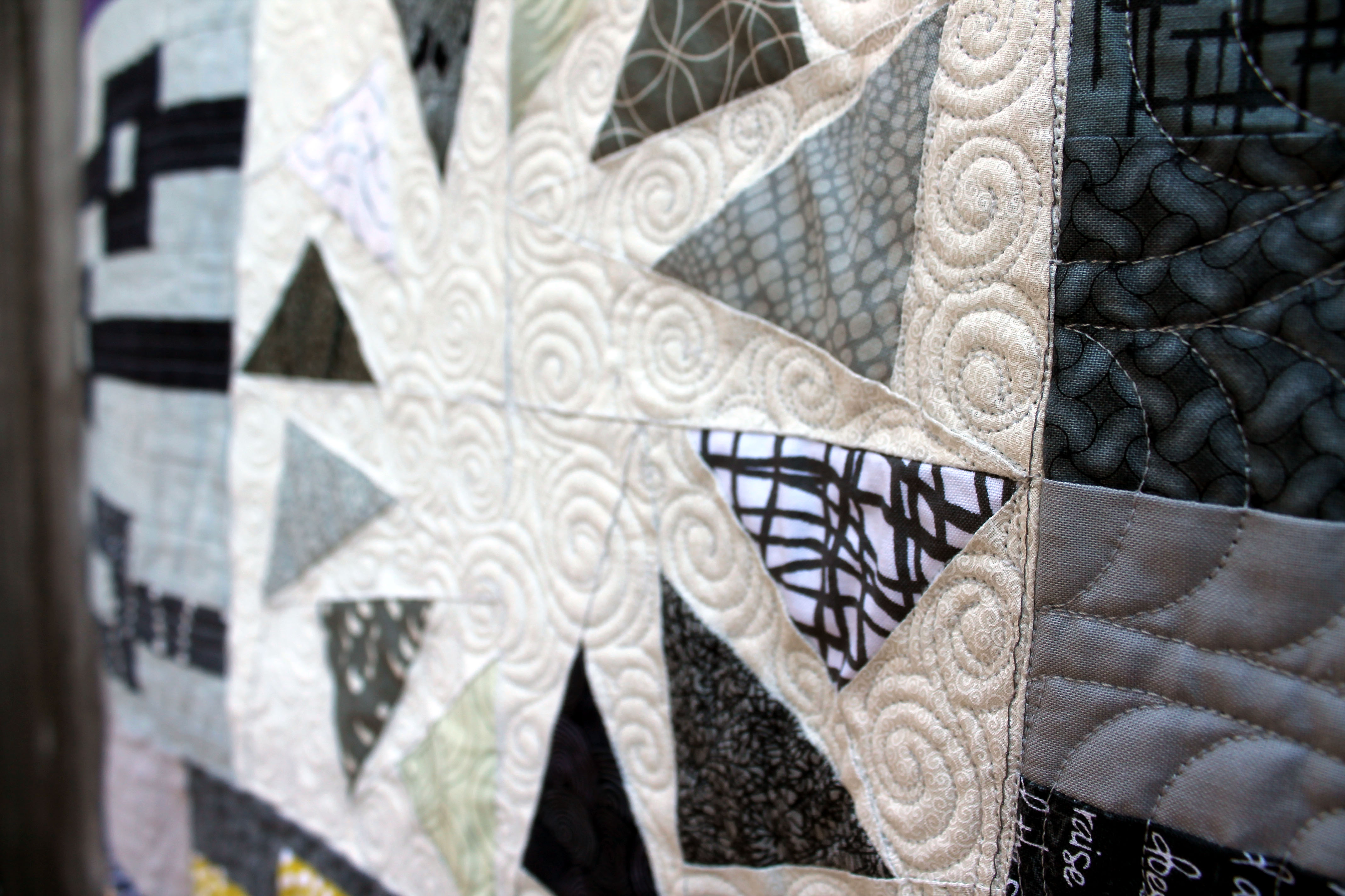 It really like the way it turned out. The fun quilting was done on the long arm at my local Quilt shop – Modern Domestic. I can not tell you how much I love having a local shop… and one that is just 5 minutes drive away. I am very very spoiled.