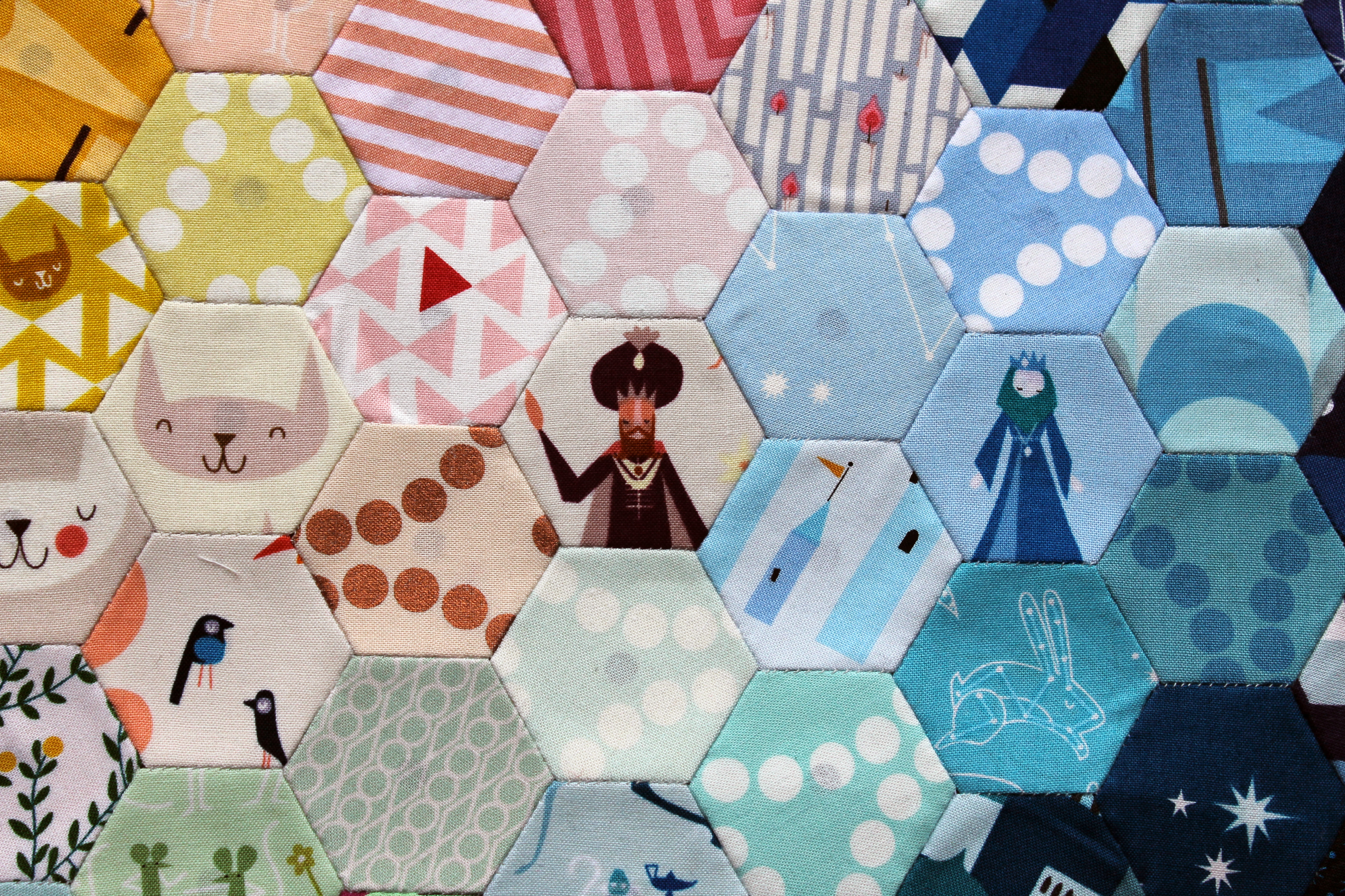 So what do you do when you have a huge collection of fabulous Lizzy House prints… you make hexagons of course…