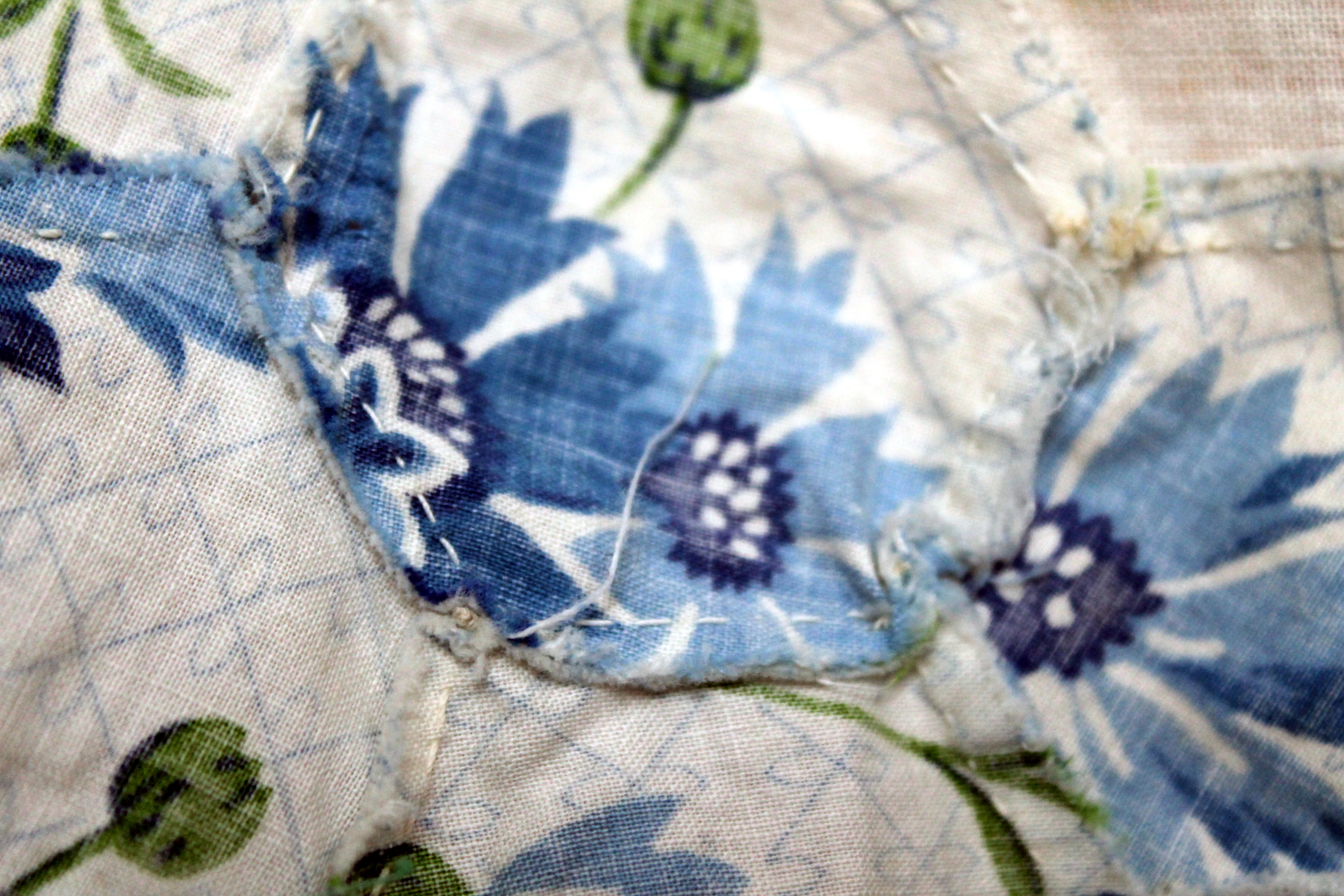 vintage hexagon sewing 2and in a couple of places there is little more stitching, mainly where the seams are a little smaller…