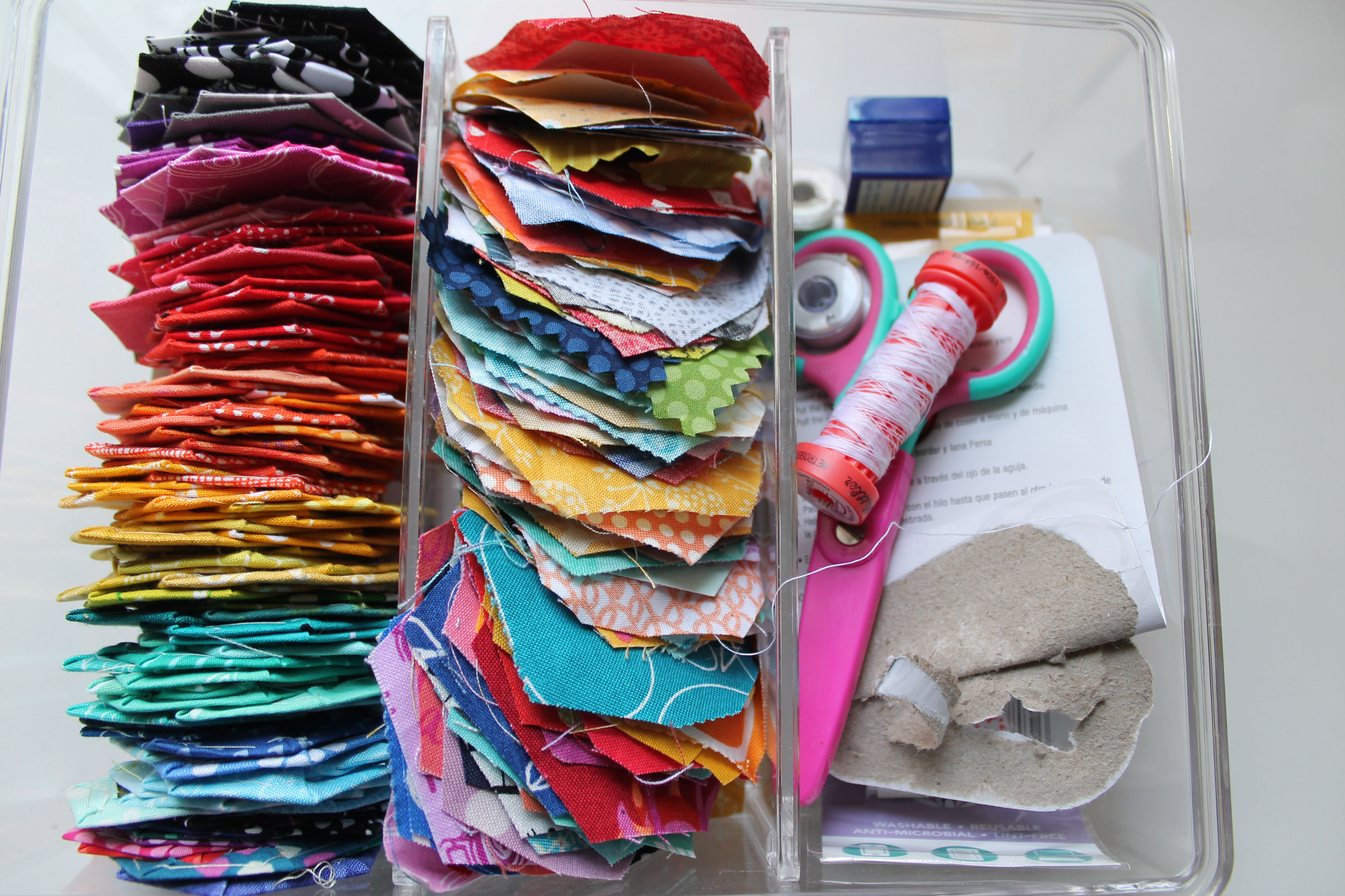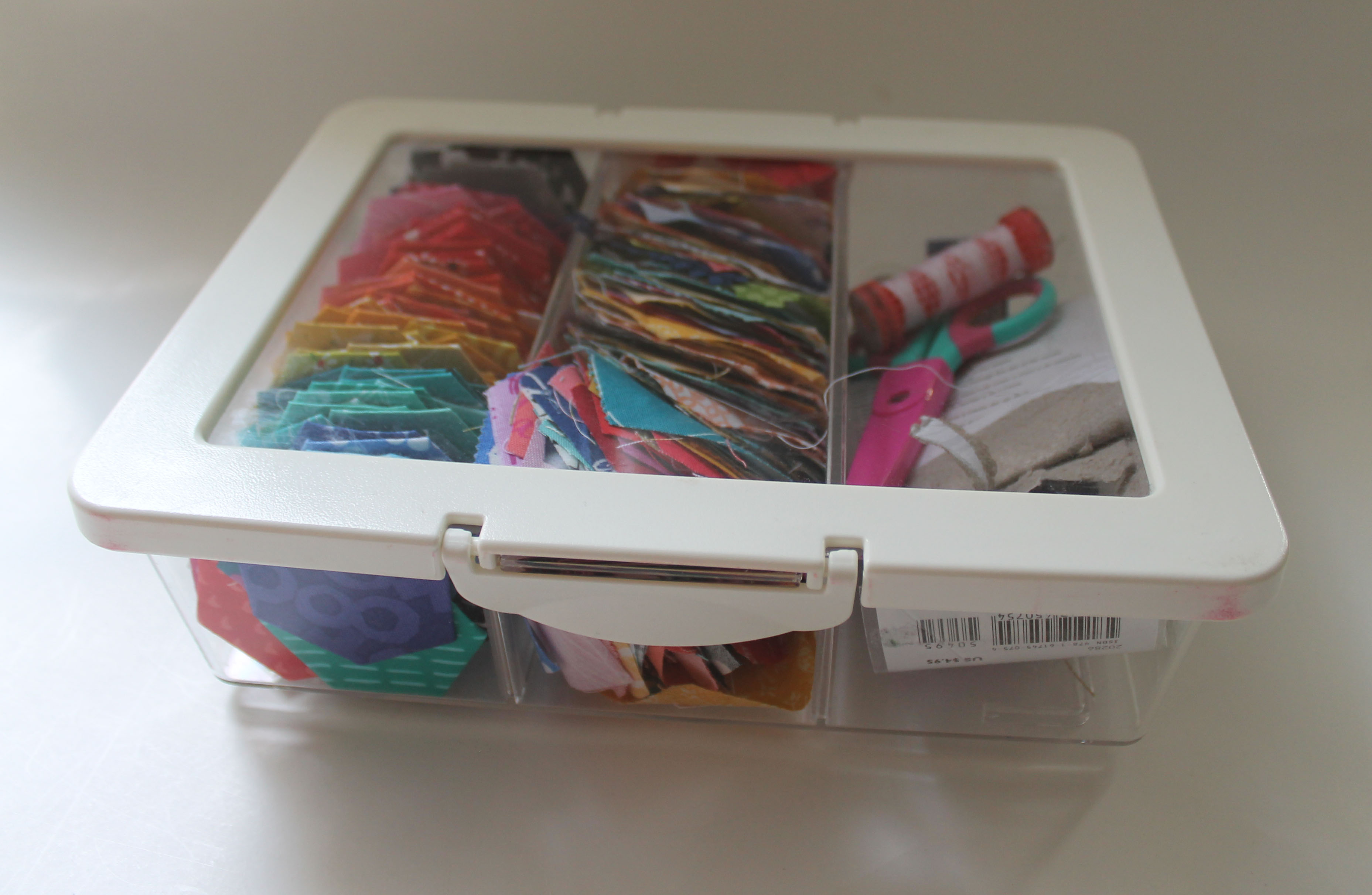 travelling hexagon kitI grab this kit regularly when we are heading ona  long drive or out to events… just in case I get time to baste a few  hexies….