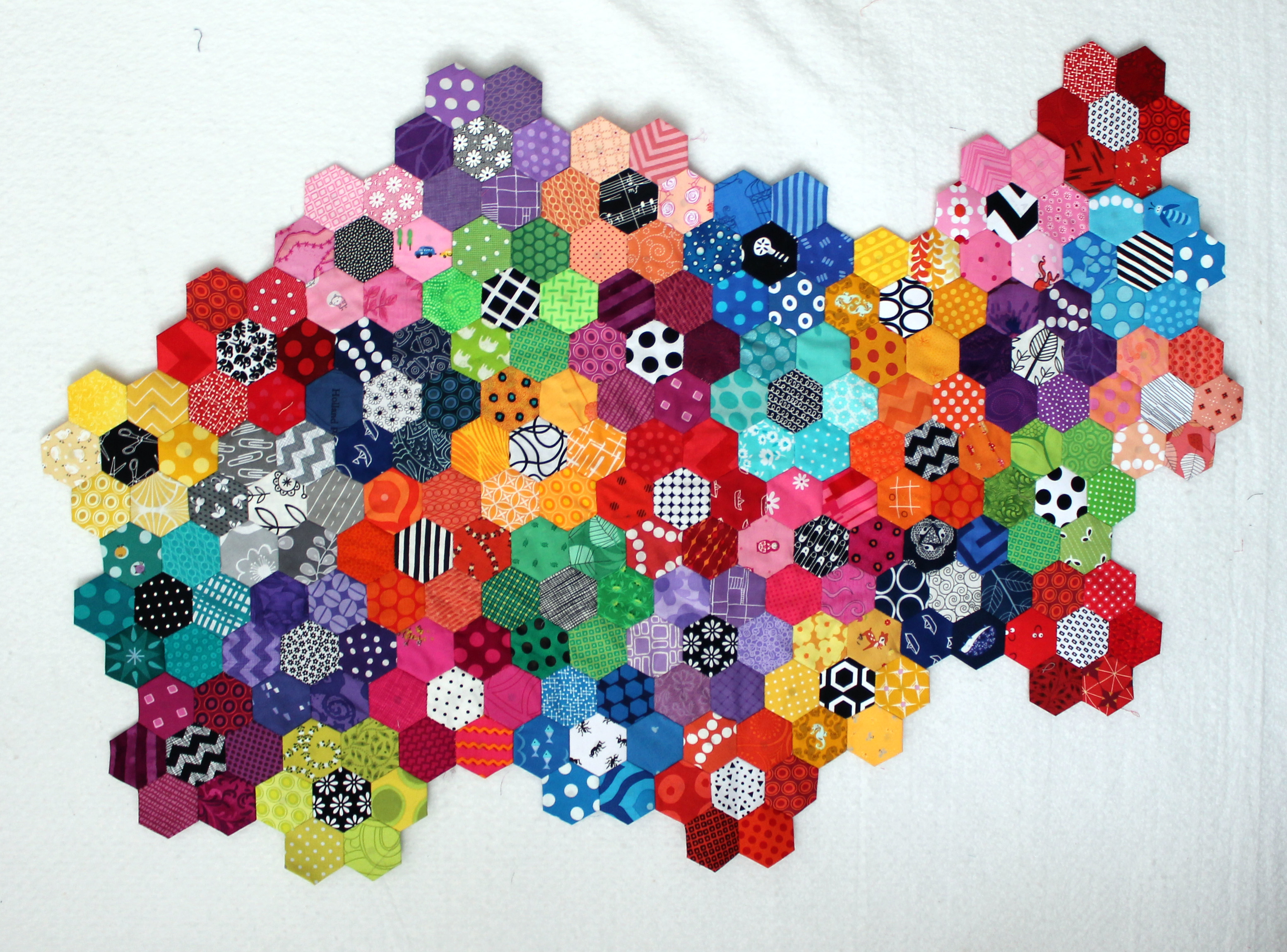 The pattern also allows you to play with how you layout the hexagons. I choose to taper my hexies off at the edges of the pillow…