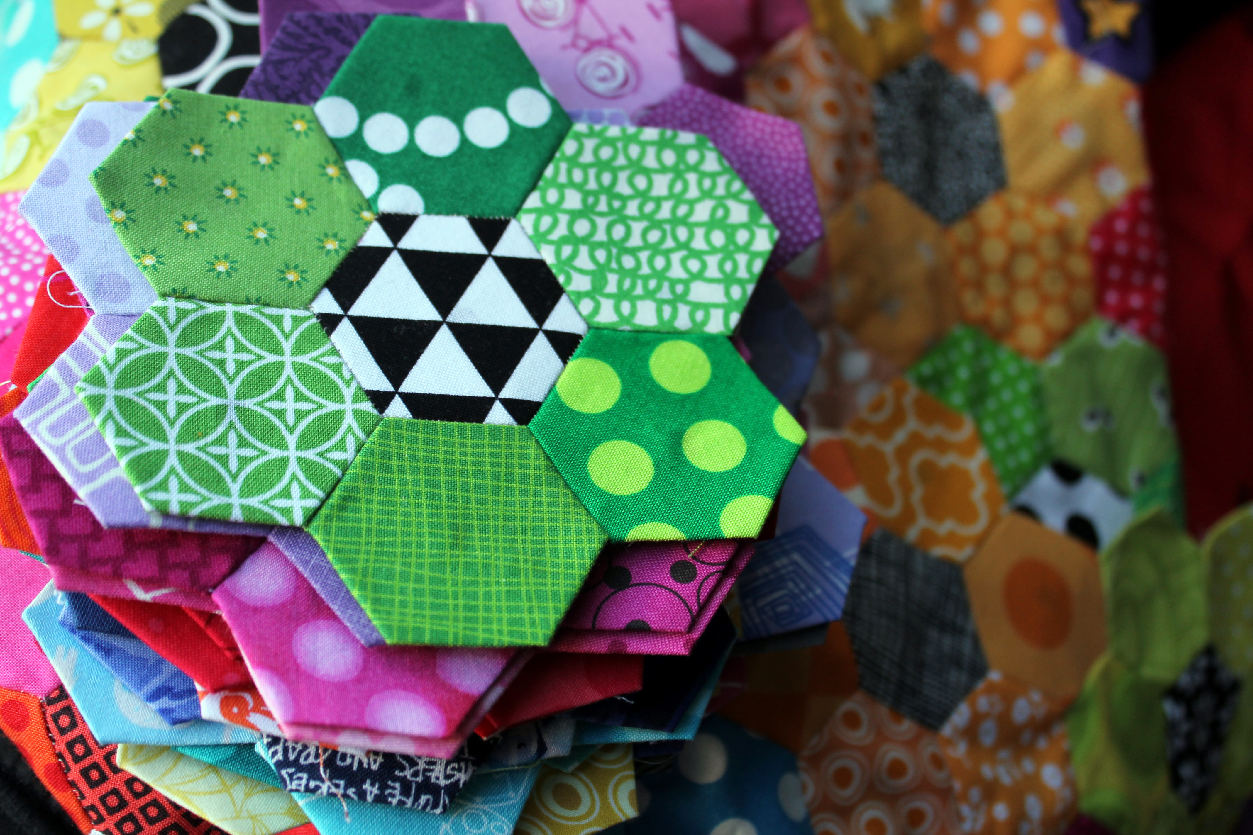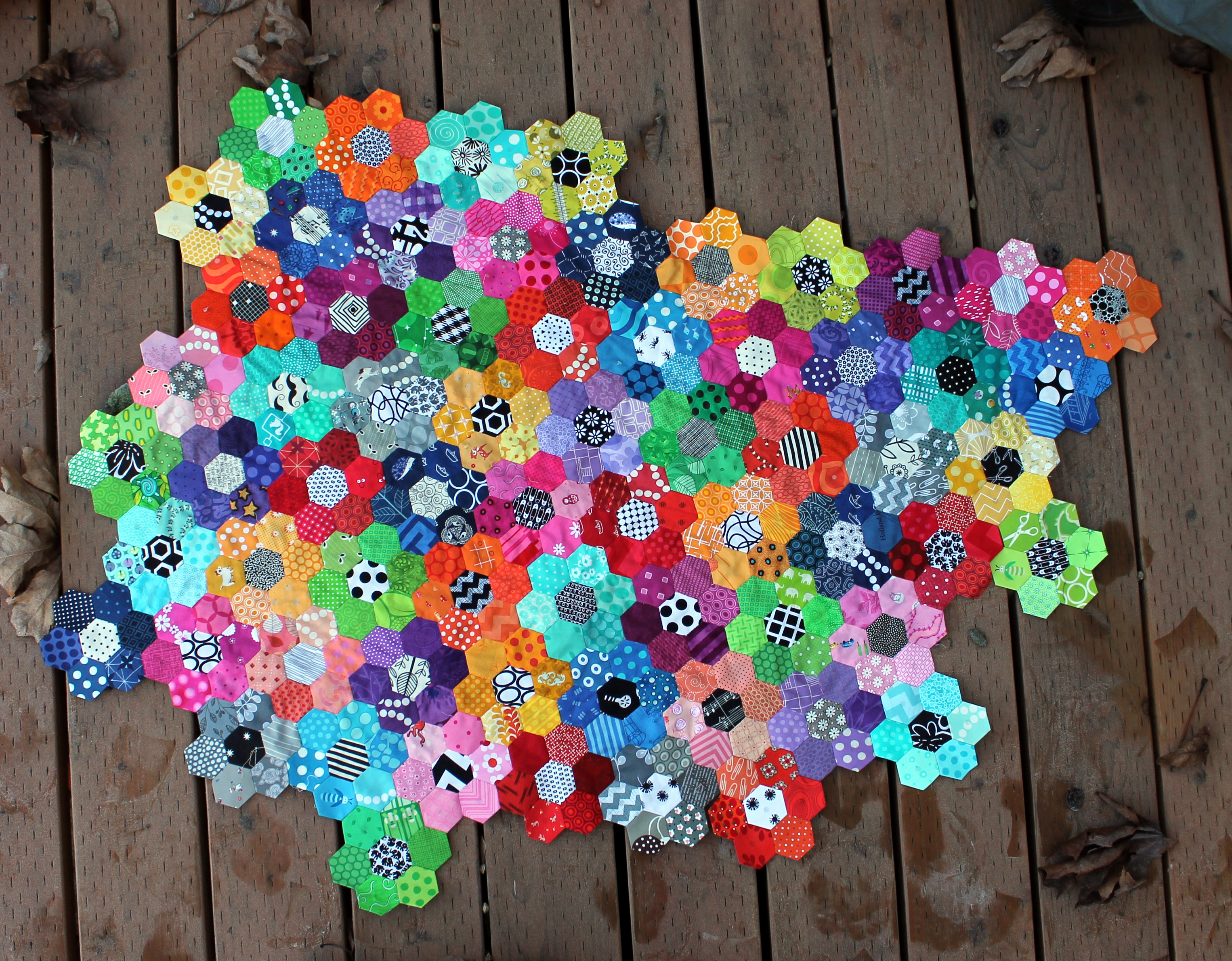 I used Nicole at Modern Handcrafts modern hexagon tutorial to make the pillow. This tutorial is fabulous and I love the easy at which the hexagons are attached… there is no hand sewing the suckers together, just glue.. lots and lots of glue.