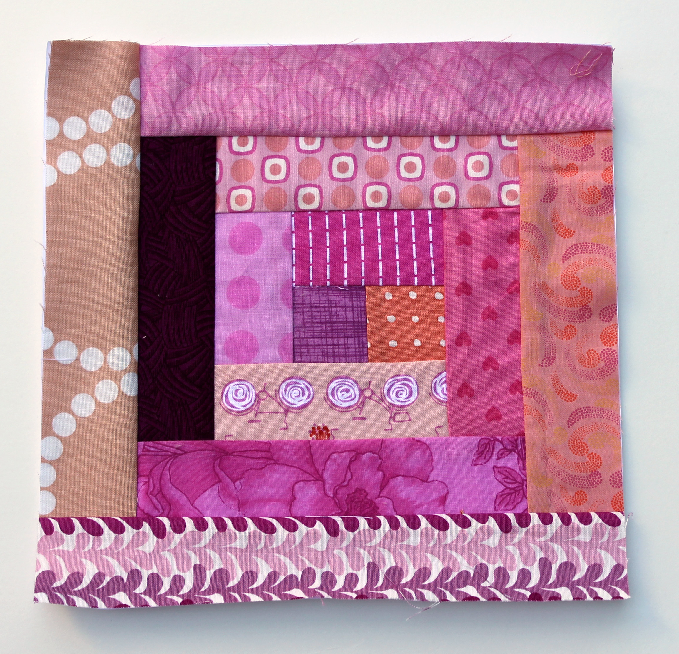 You can find the paper piecing pattern I used here…. miniature log cabin pattern. The blocks came together really quickly and my final quilt is 15 inches by 15 inches square and now all I have to do is work out how I want to back and quilt it.