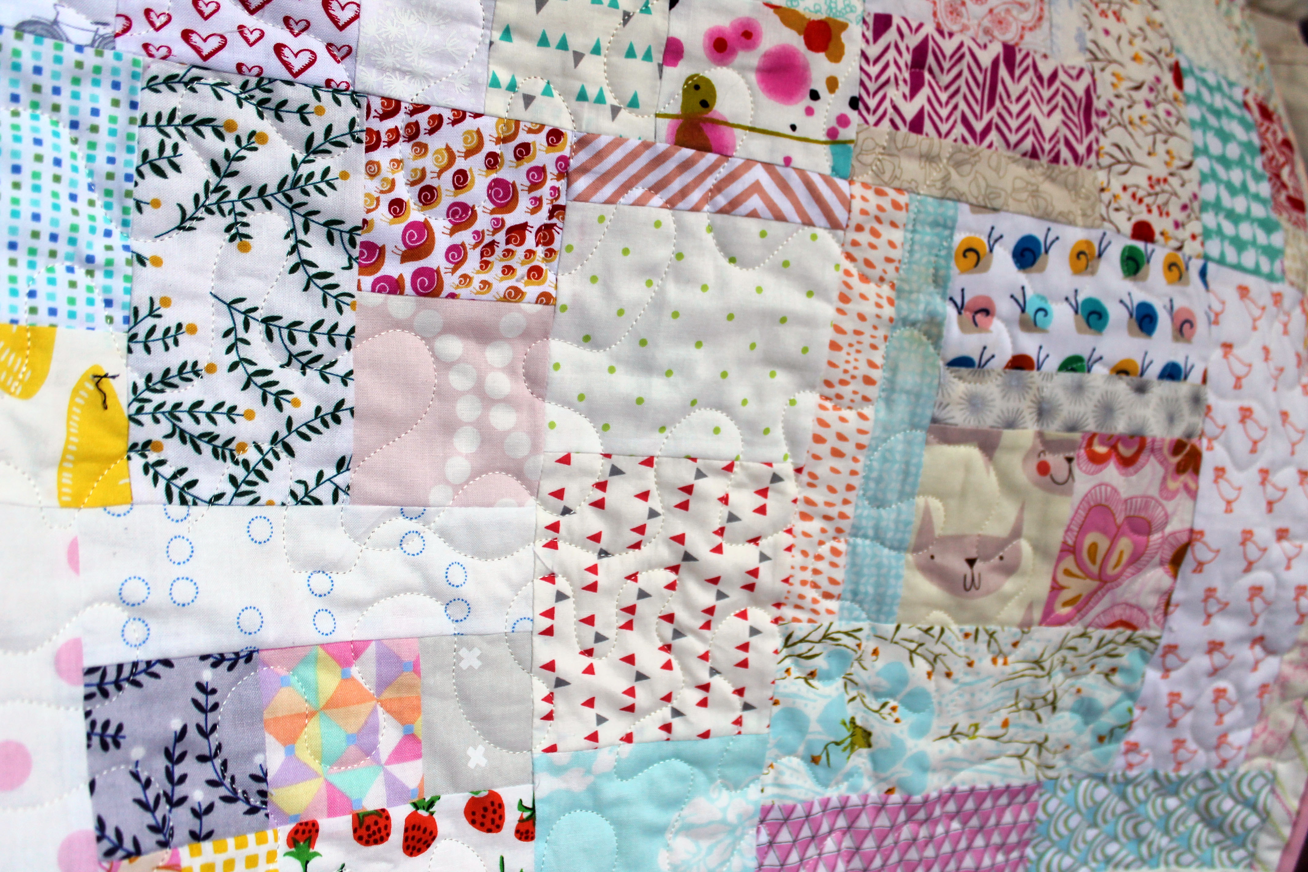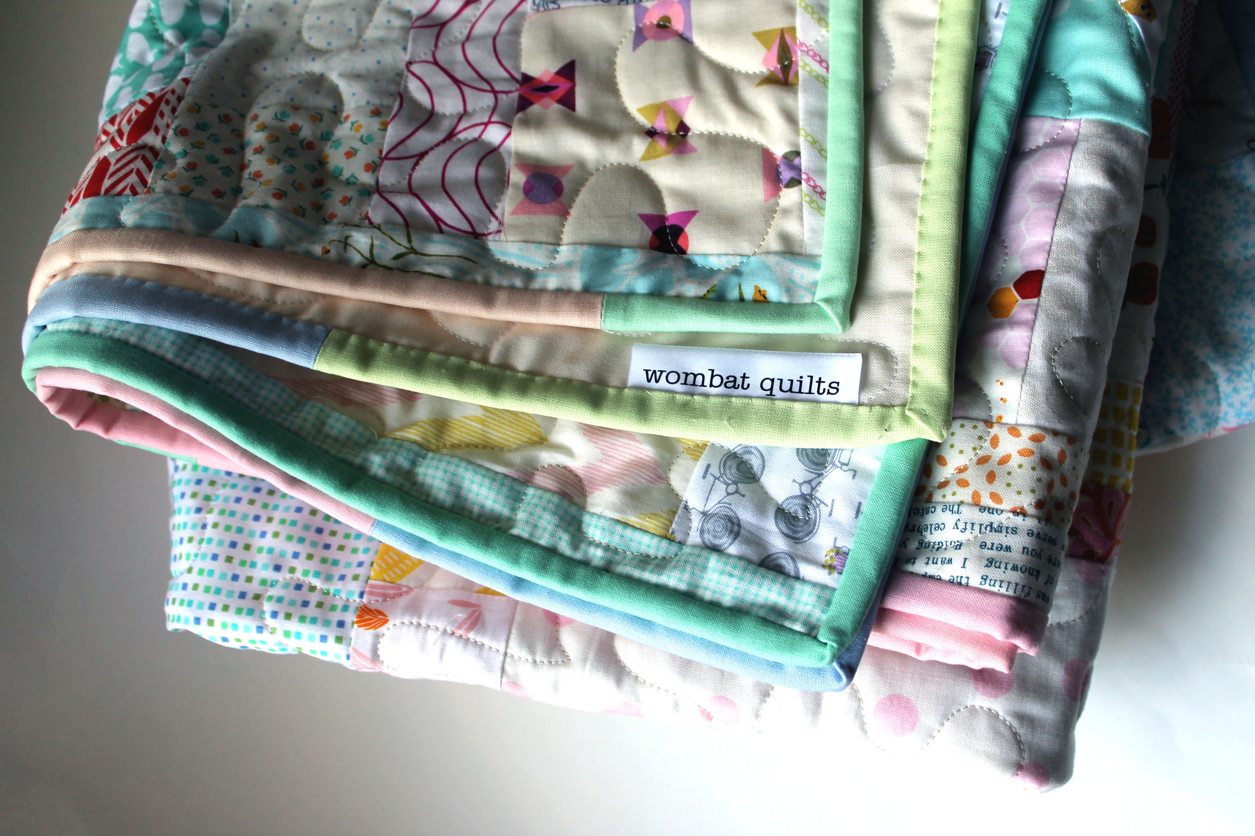 For the binding I used the left overs from last weeks quilt….solid Kona pastels.