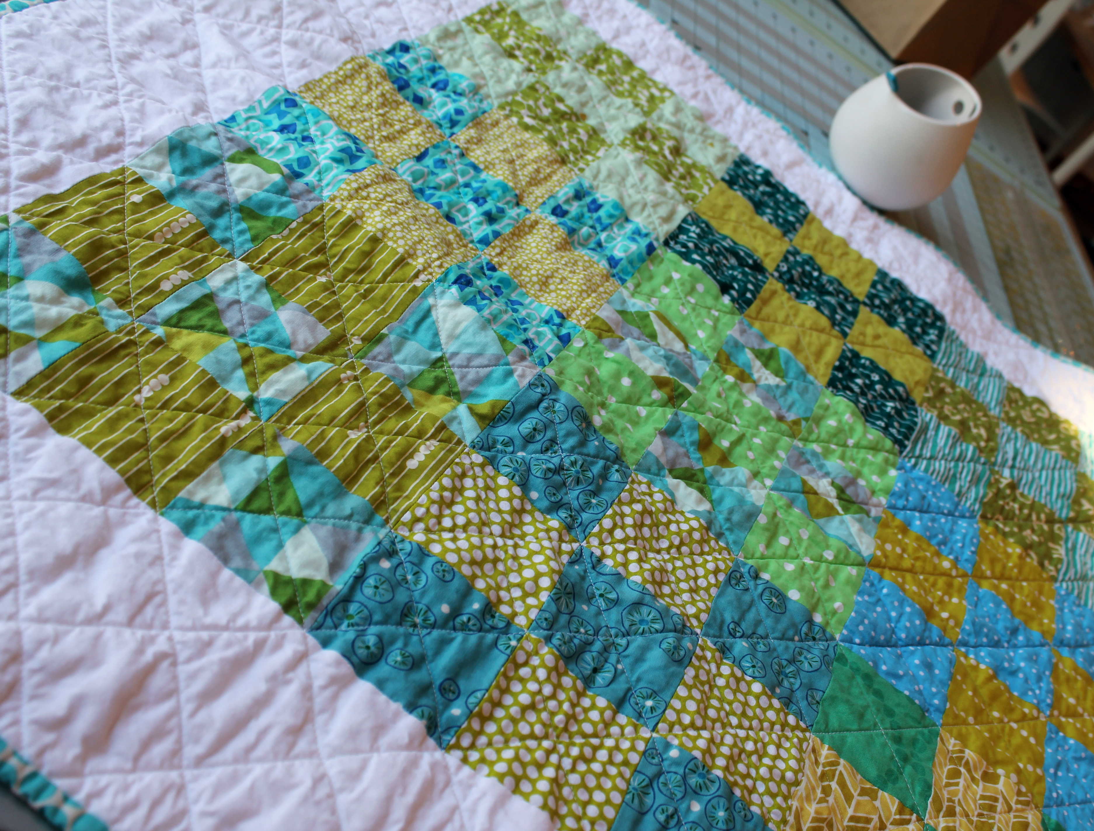 This is my favorite of the quilts… I love how the soft pink and blue play together….