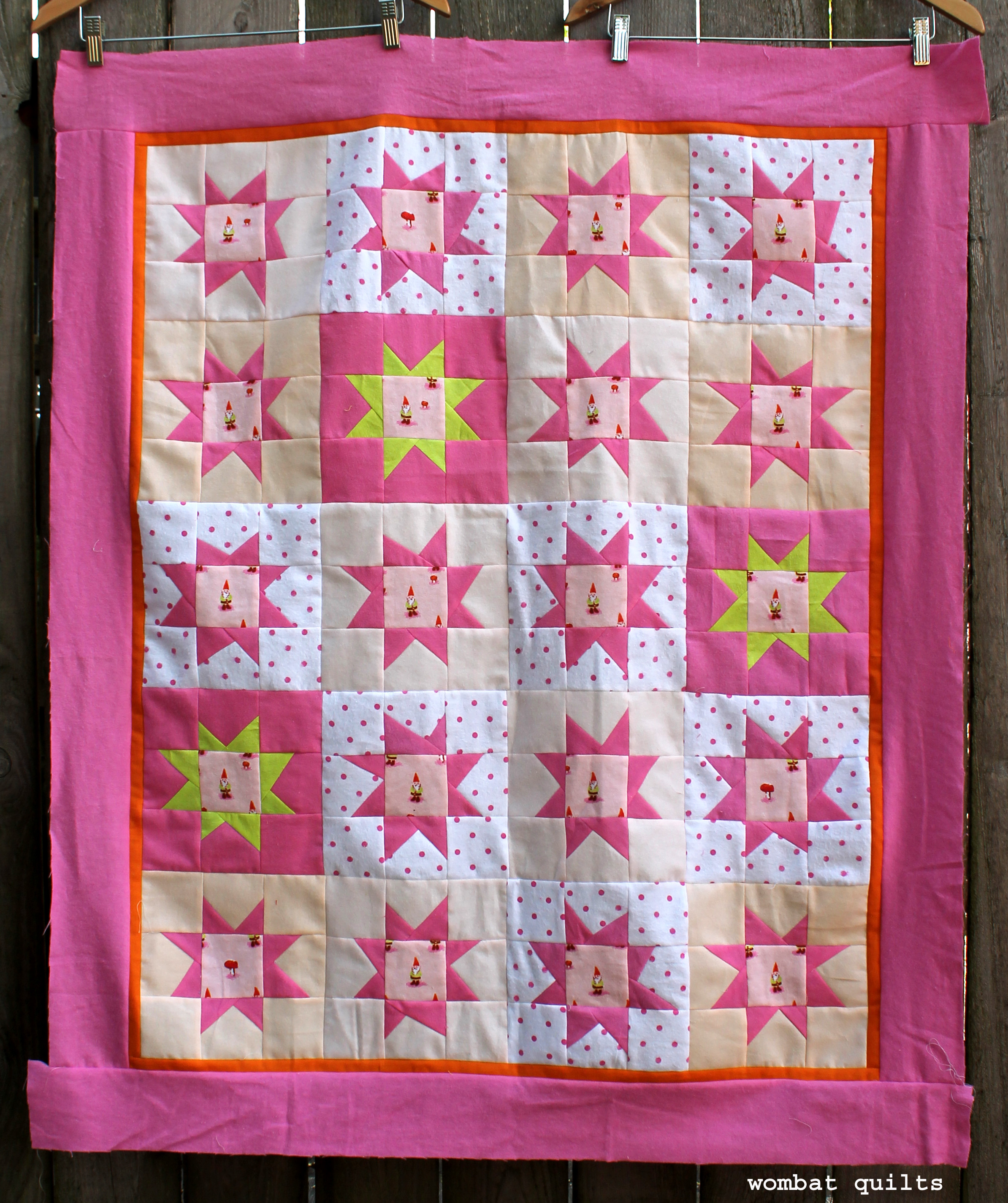 I got to back my pink stars with some of my favorite fabric from Michael Miller. I love the mermaids so much…and this fabric was so perfect for the quilt it had to be used.