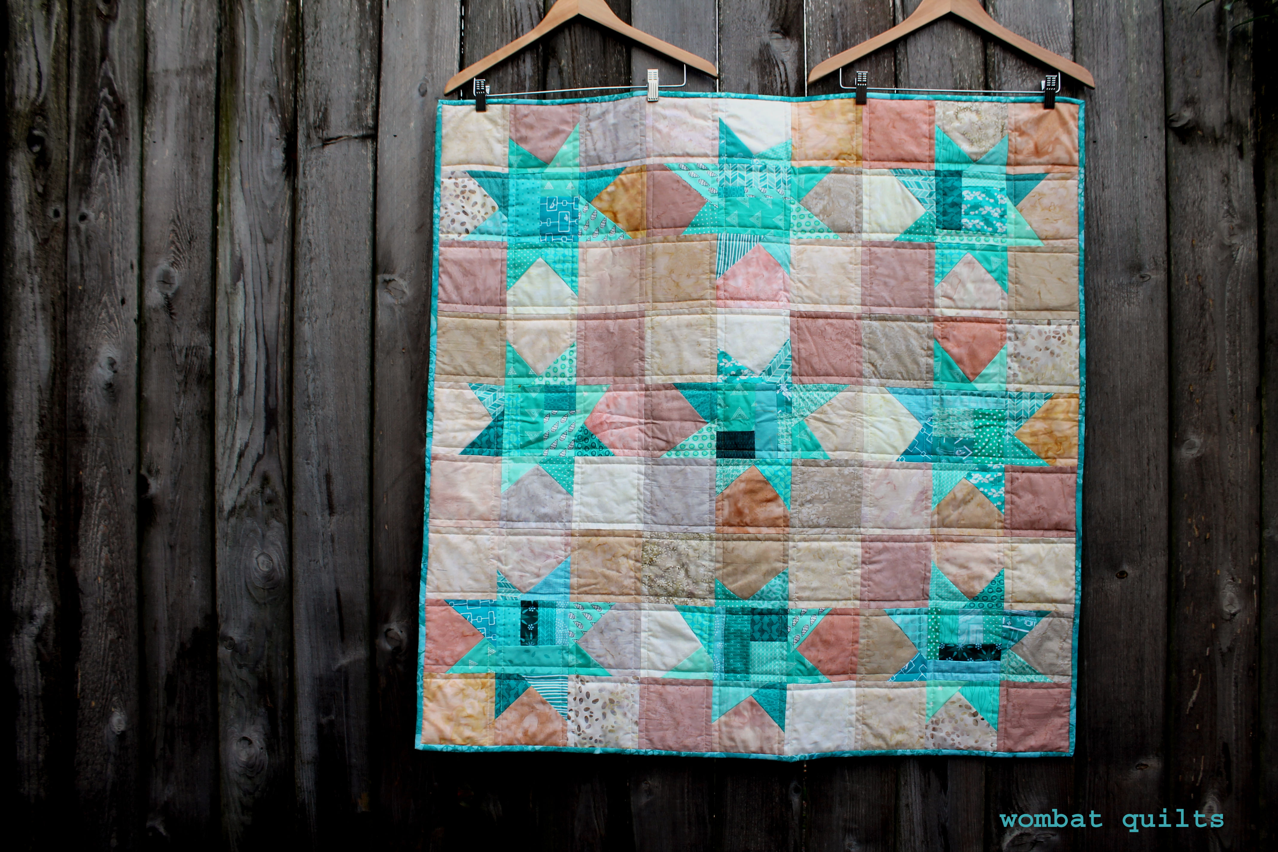 Plus I got to play with novelty prints which makes me so happy. The background for the stars uses 4 different Batiks and with all these quilts the colour variation in the background adds a nice texture to the overall quilt I think.