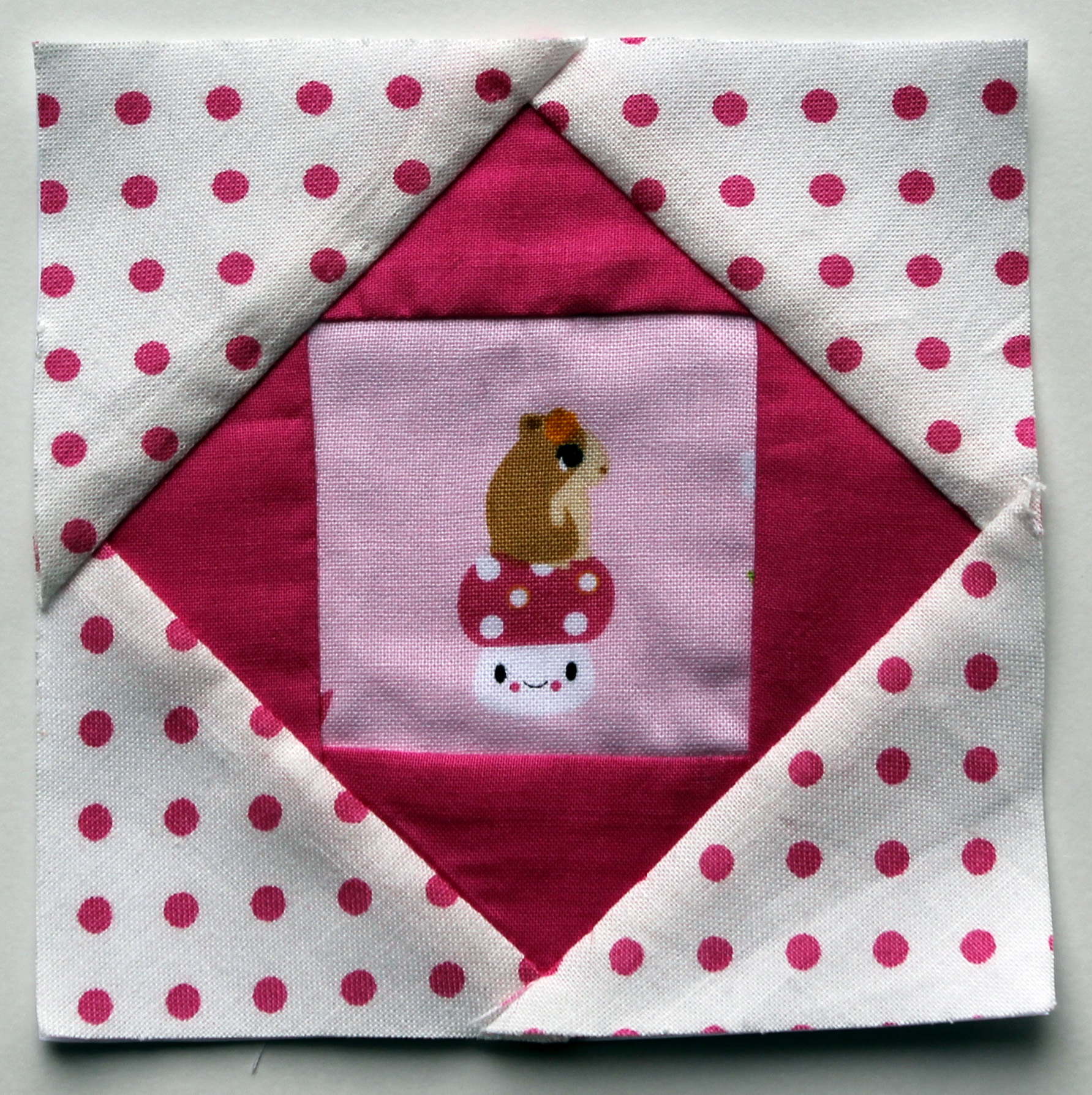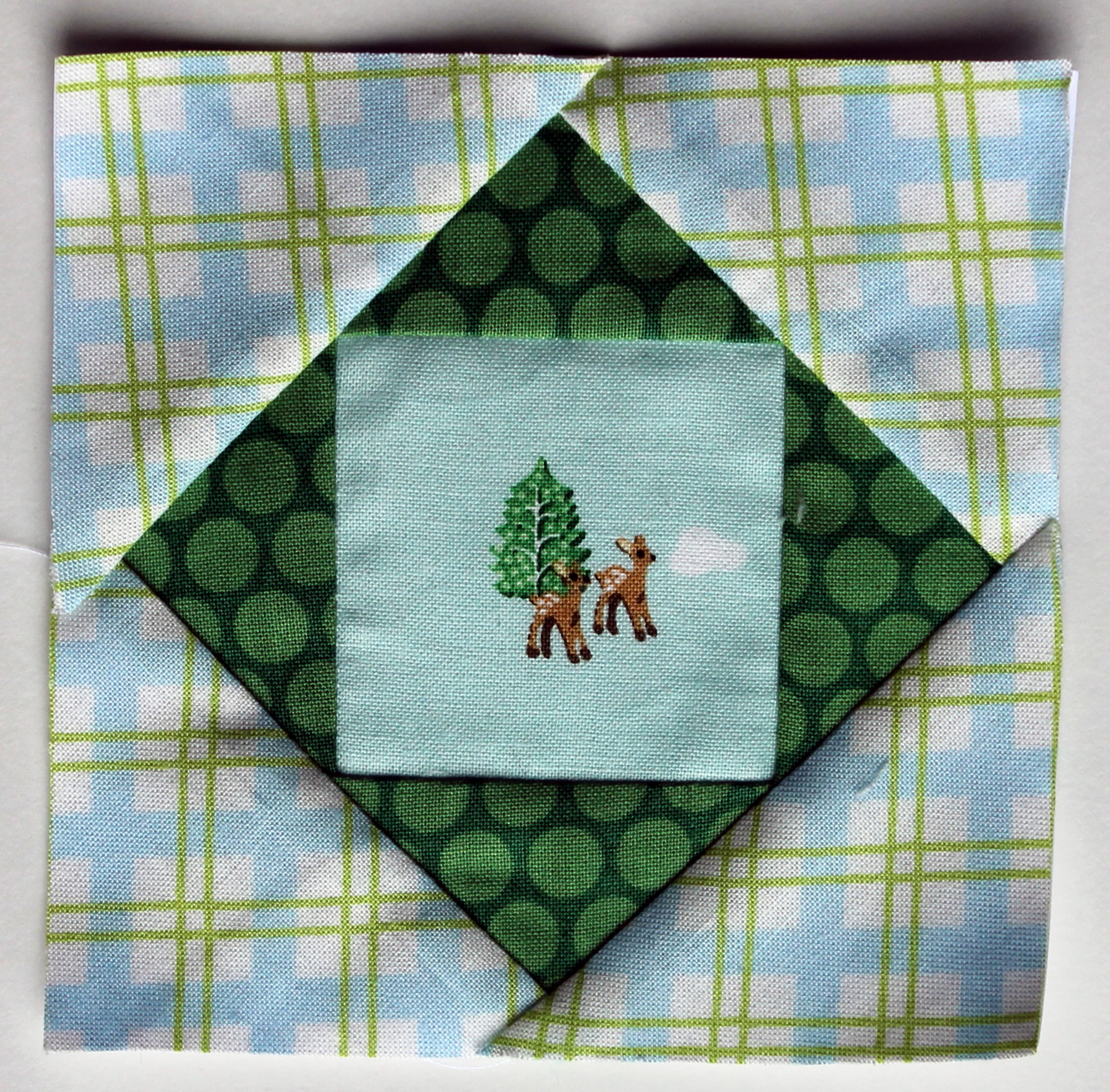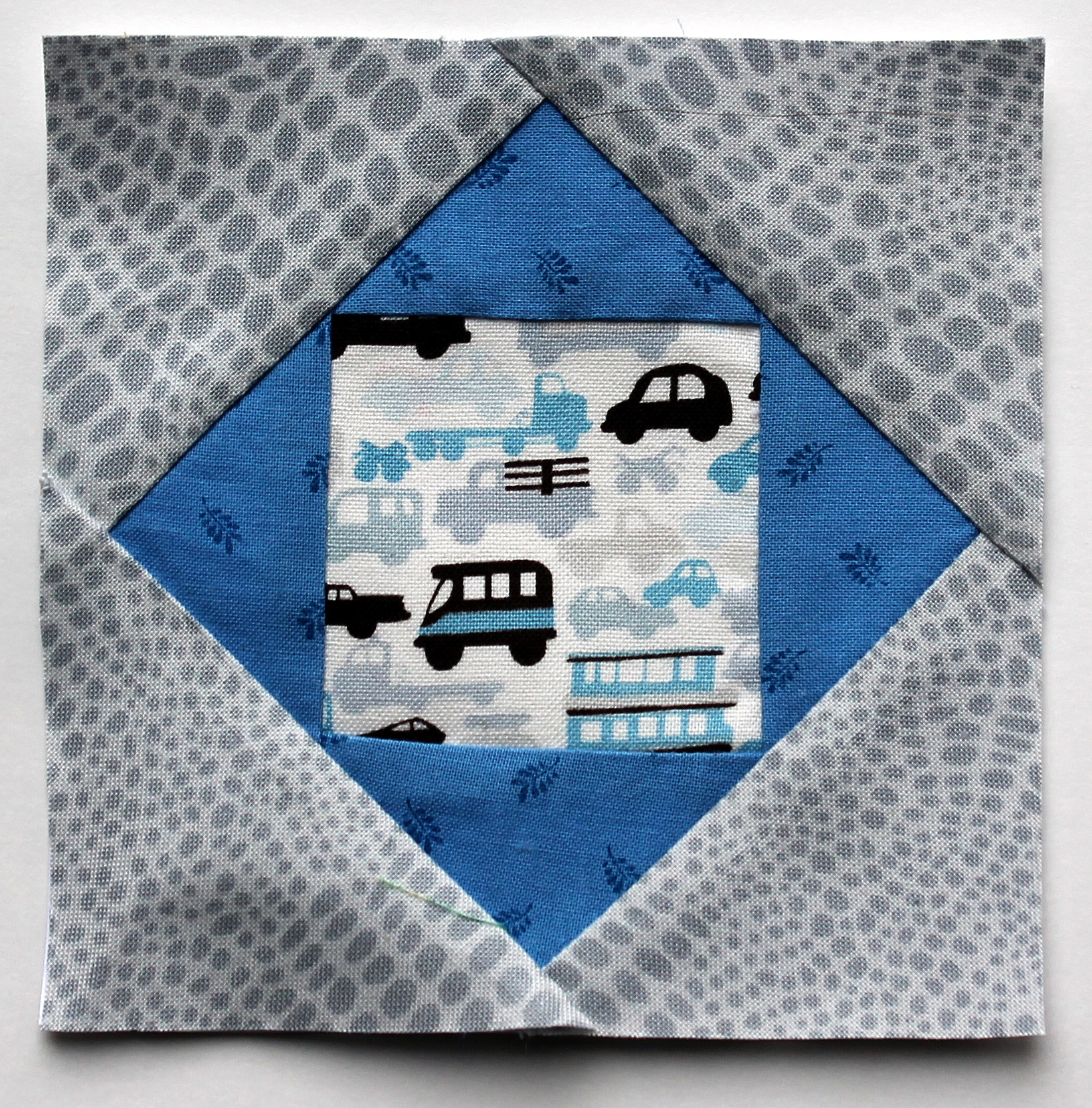 One (1) 3 ½ x 3 ½ inch square of the center fabric (light blue)