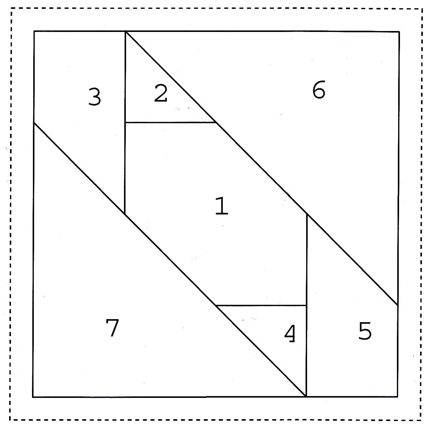 The block was designed as a 4 x 4 inch block, the size I usually work with, but for this quilt I blew it up to 7 x 7. Blowing it up was as easy as selecting “scale to page” on my printer and then trimming the block using my ruler’s 1/4 inch mark rather than the dotted lines.