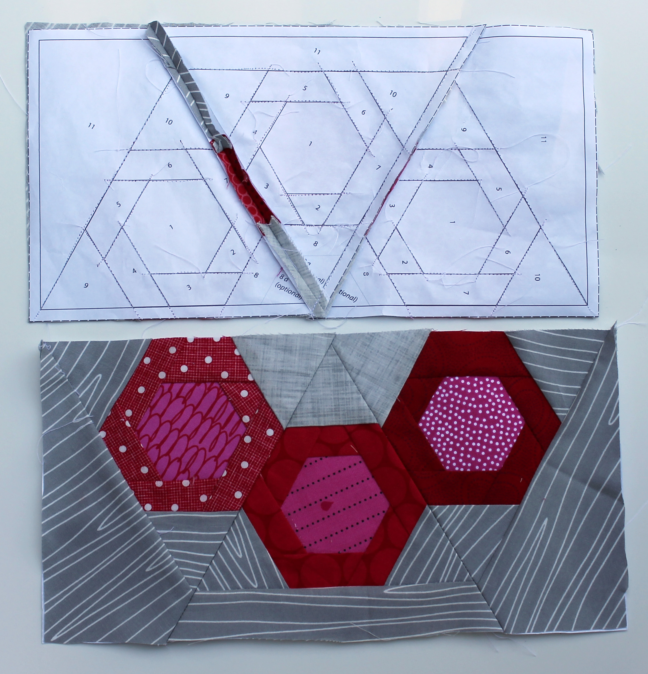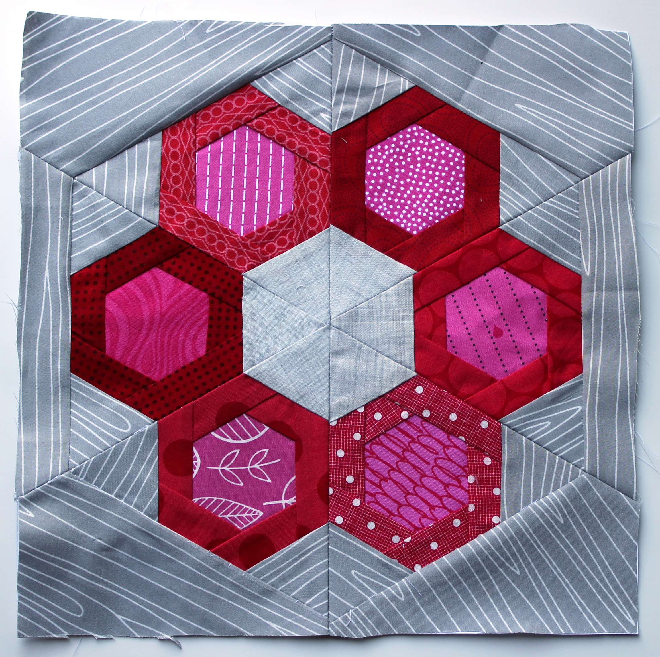 When I put the blocks I have done so far up on the design wall I realised that there was another influence at work… my hexies.